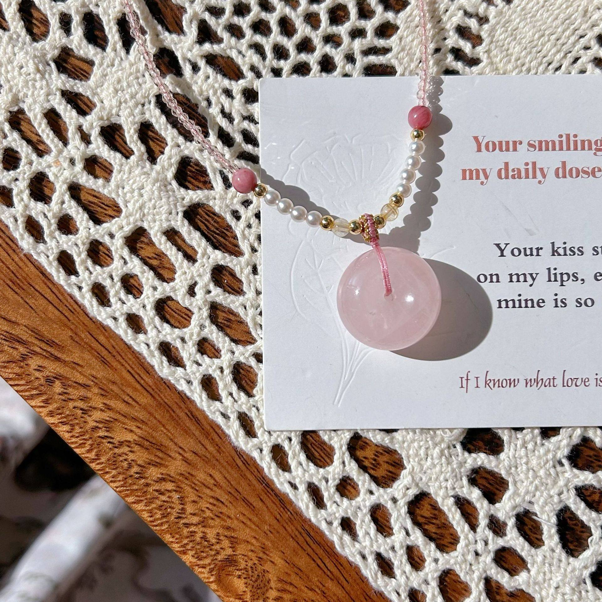 2025 Design Natural Crystal Necklace Chalcedony Necklace Atmospheric Pink Necklace Female Gift Summer Chinese Style