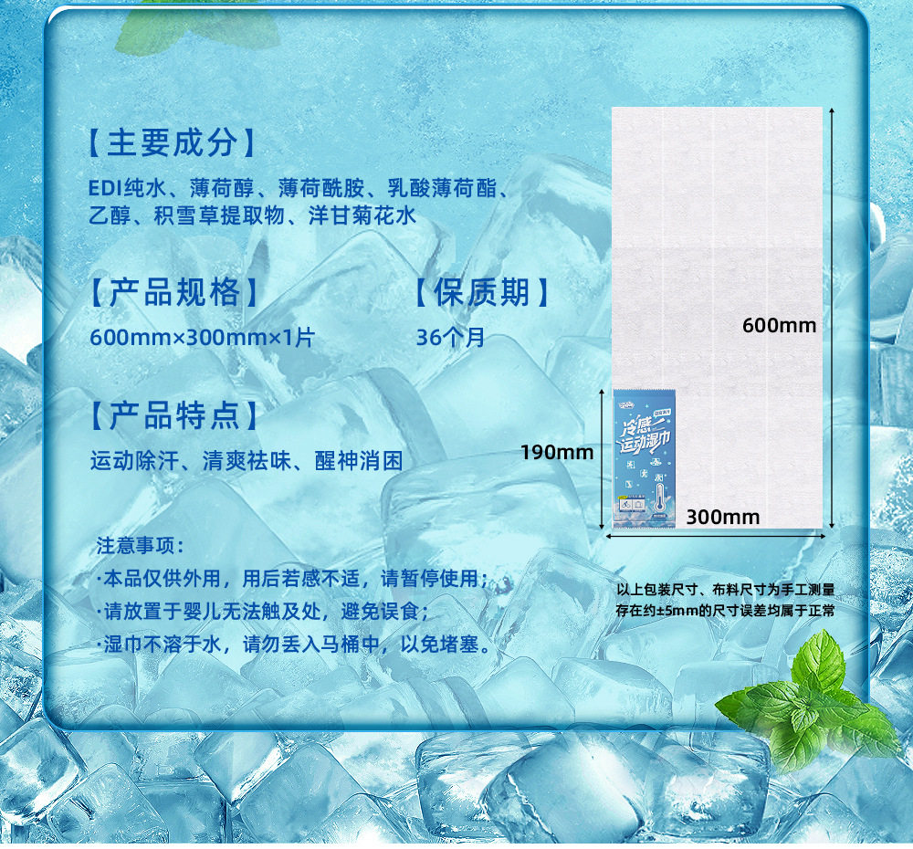 | Color classification | 60*30cm cold-sensing sports wipes *1 pack |