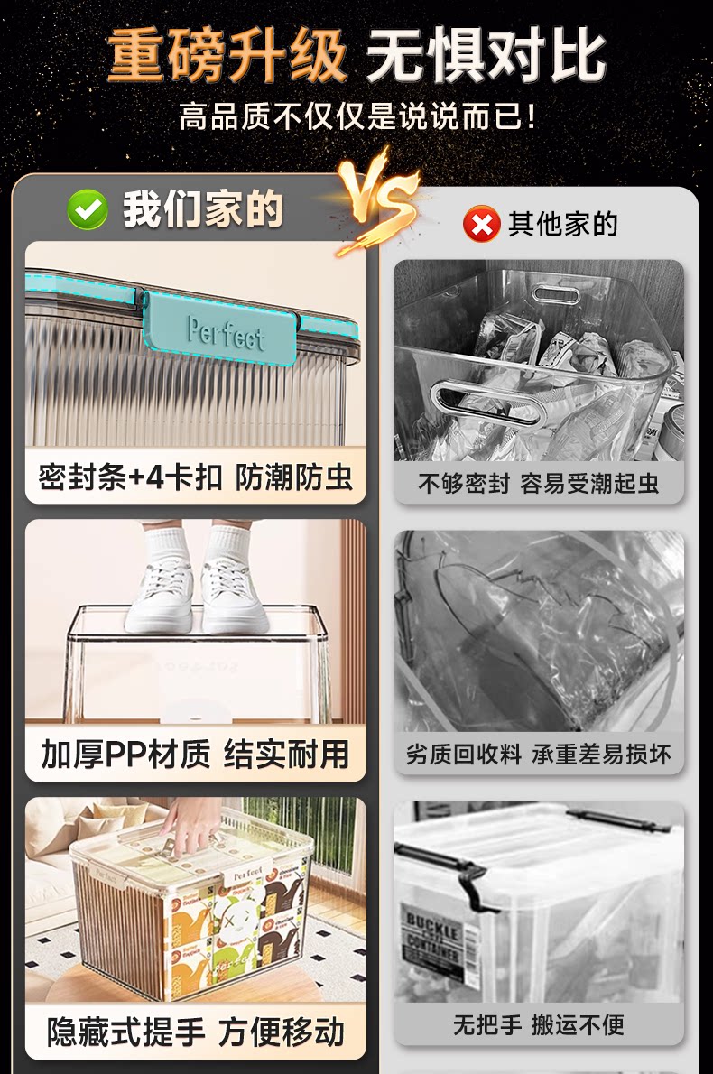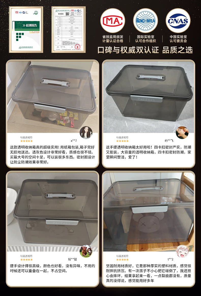 Portable Transparent Storage Box for Household Four-Buckle Sealed Moisture-Proof Organizing Toys and Snacks Large-Capacity Plastic Storage Box
