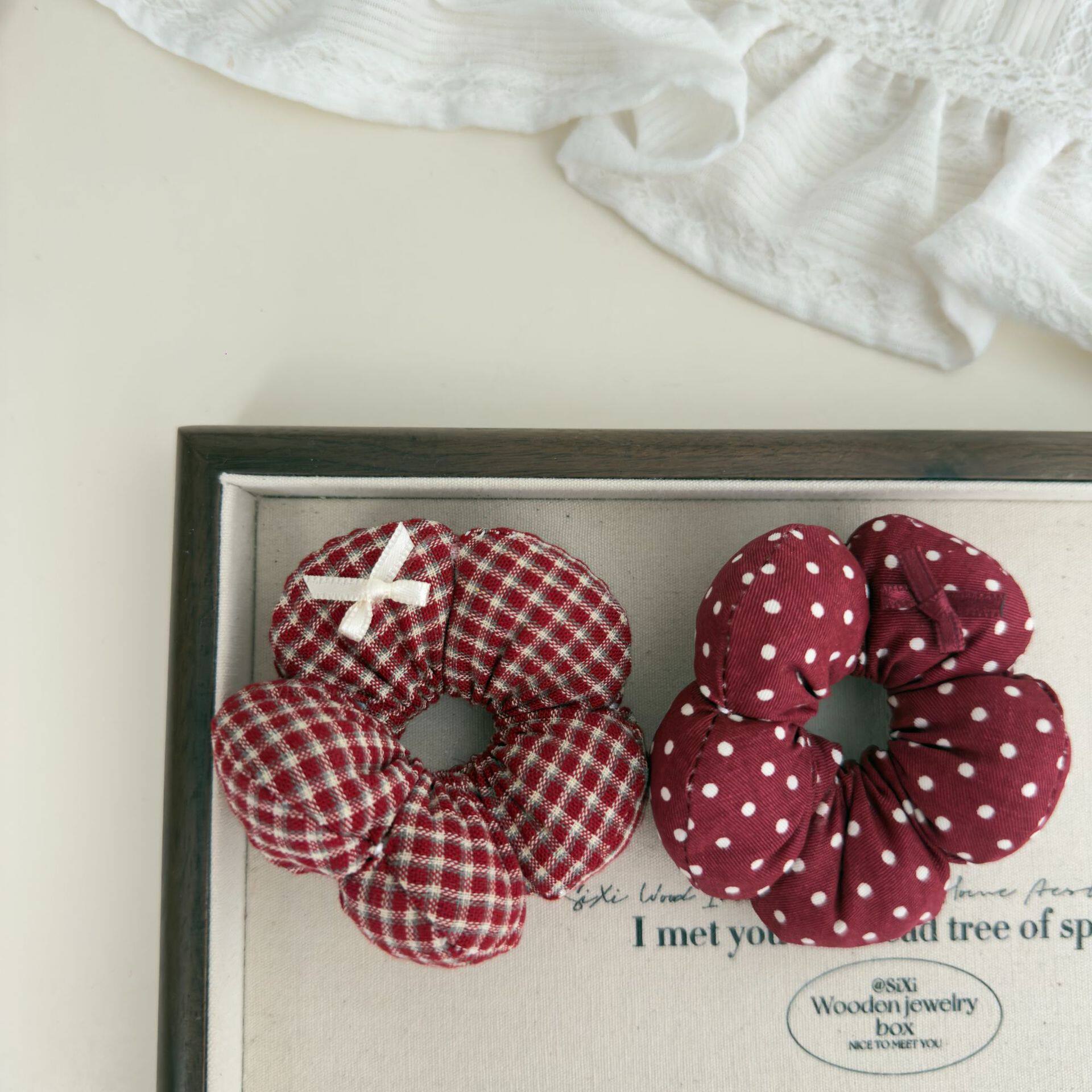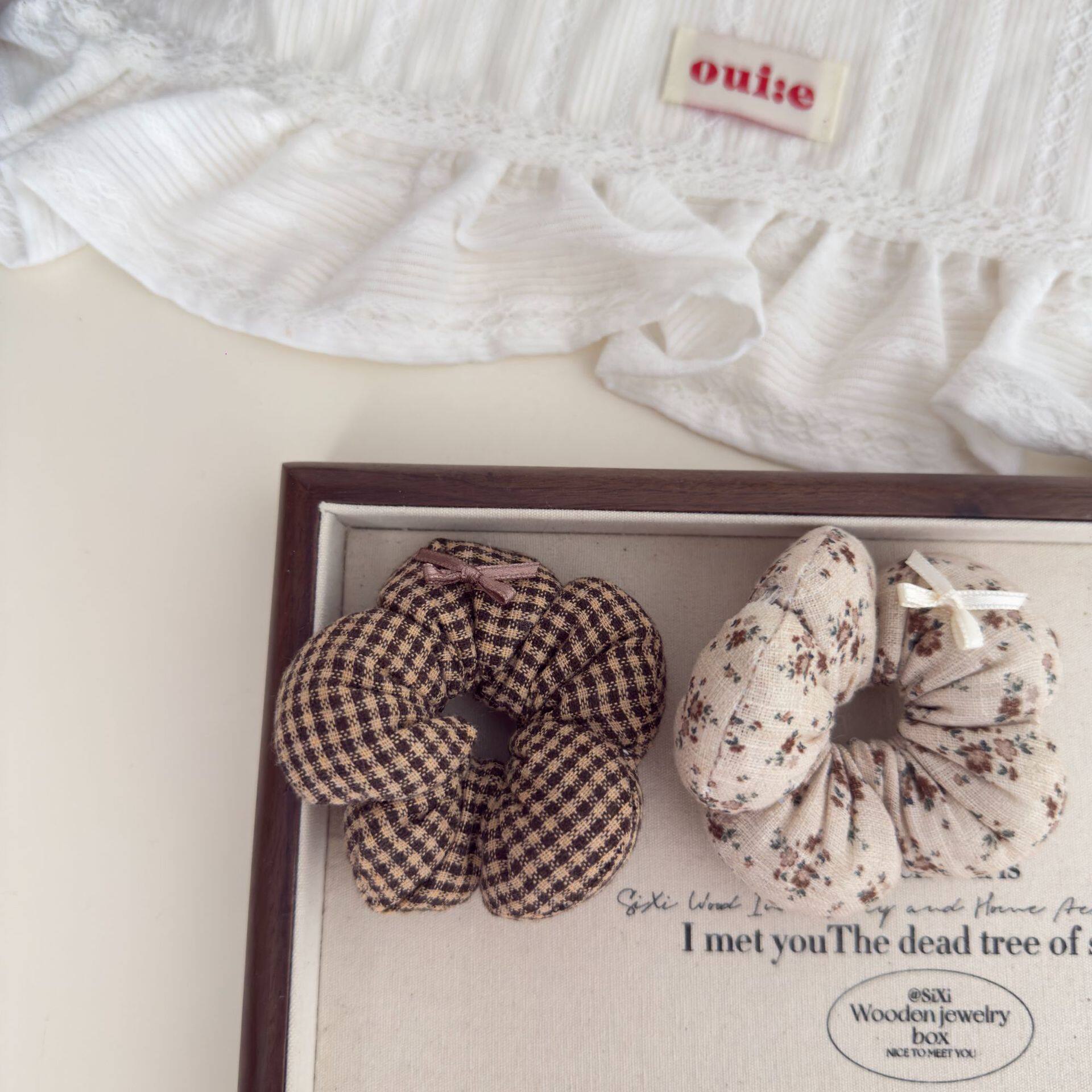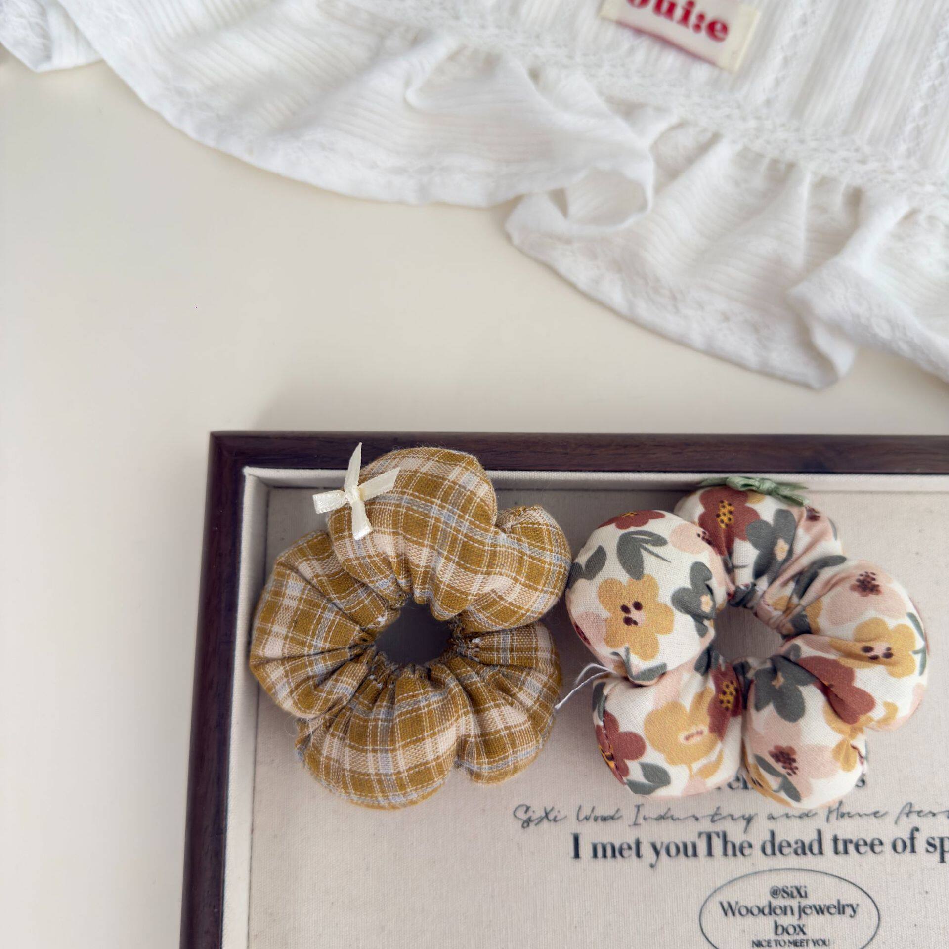 Autumn New Set of 2 Plaid Floral Polka Dot Children's Flower Hair Ties Bun Hair Ropes