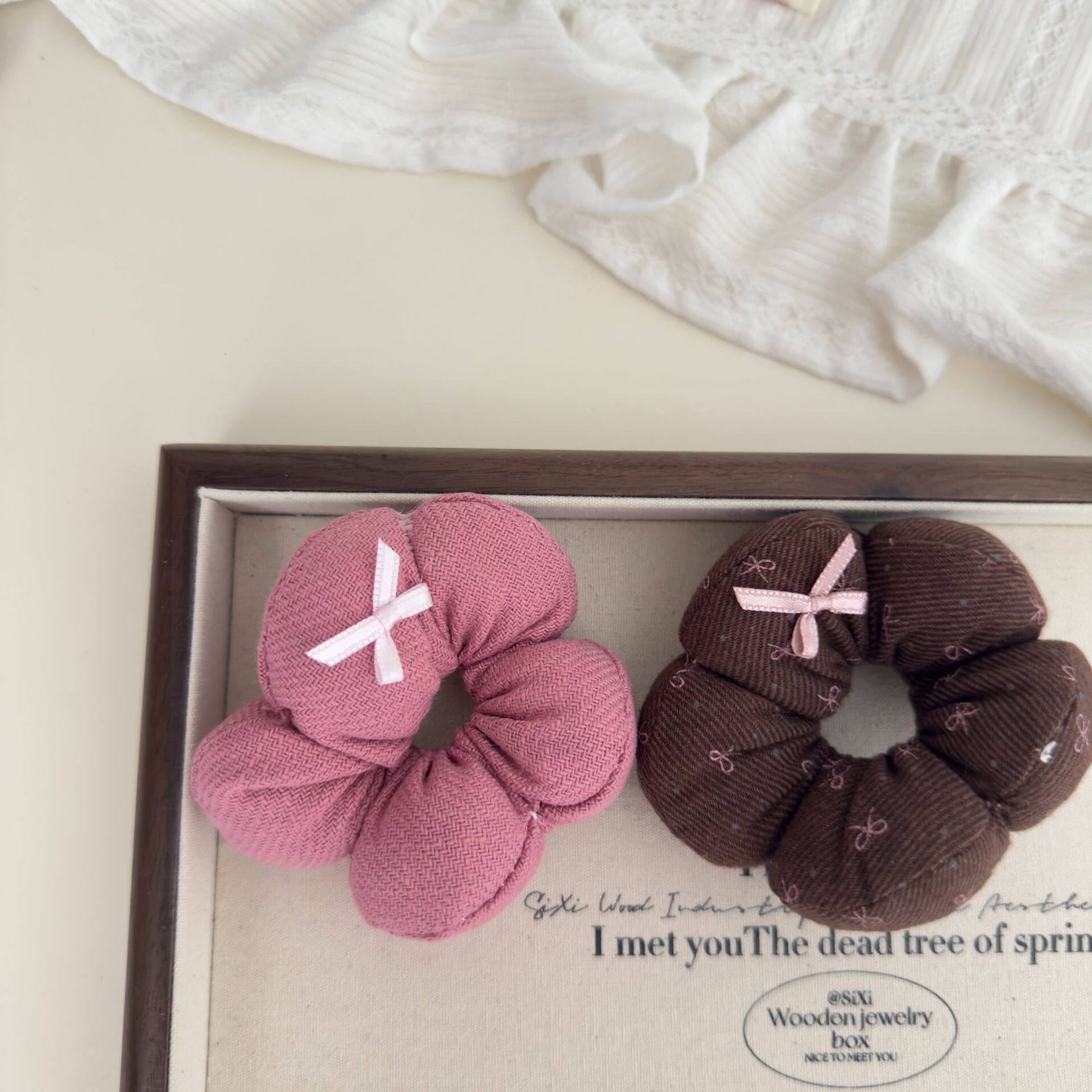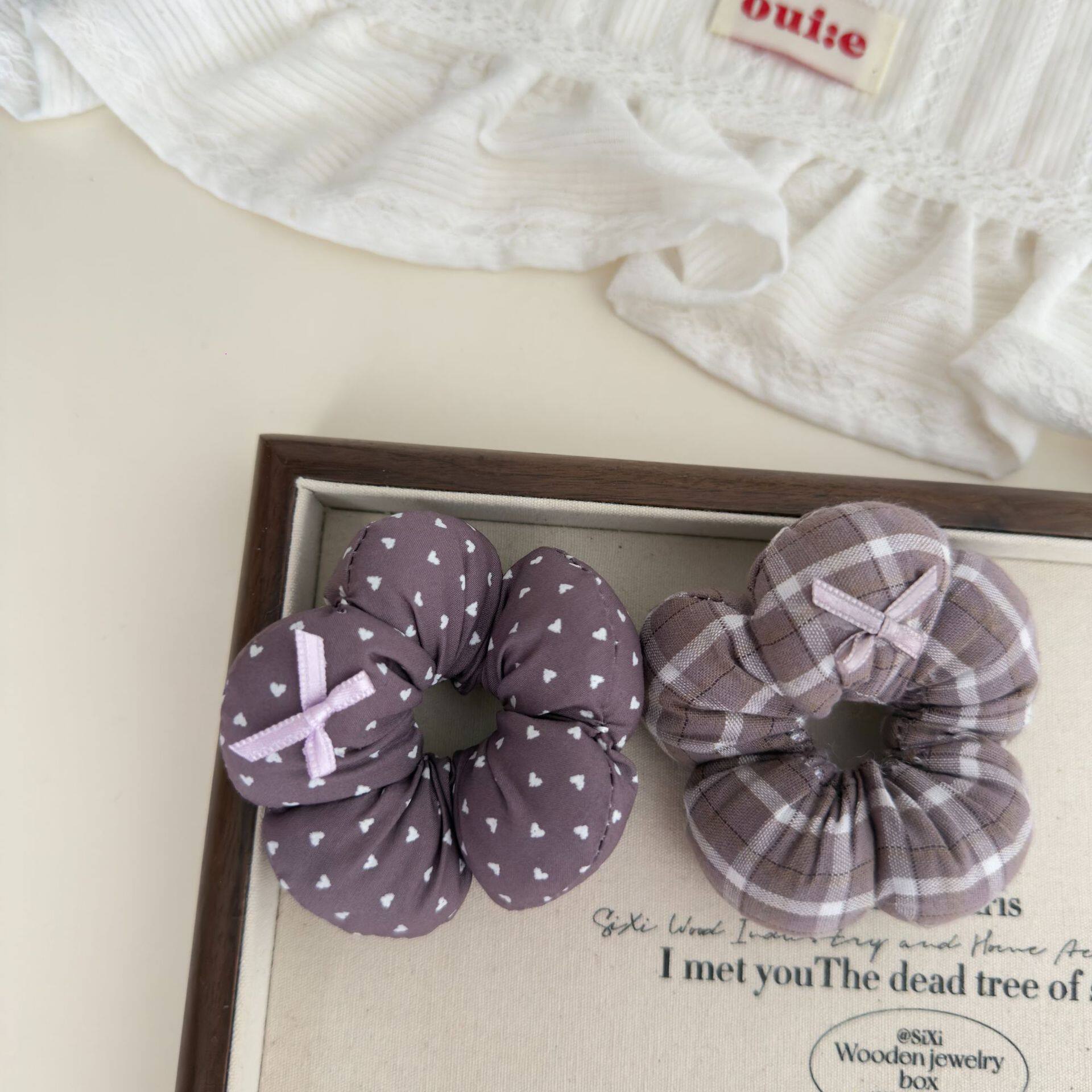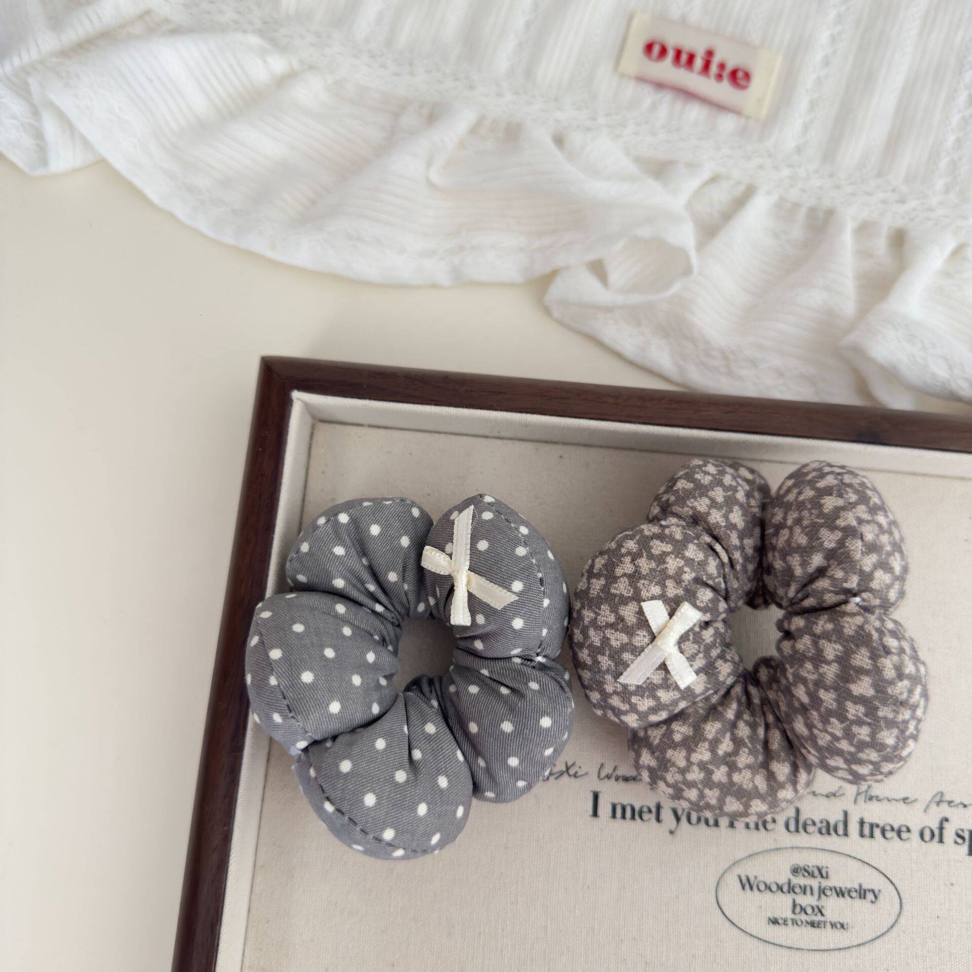 Autumn New Set of 2 Plaid Floral Polka Dot Children's Flower Hair Ties Bun Hair Ropes