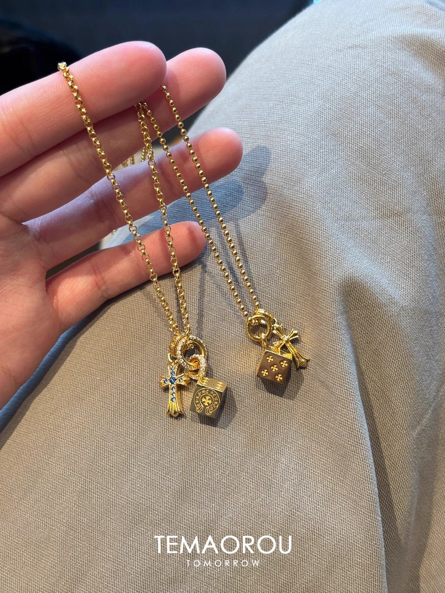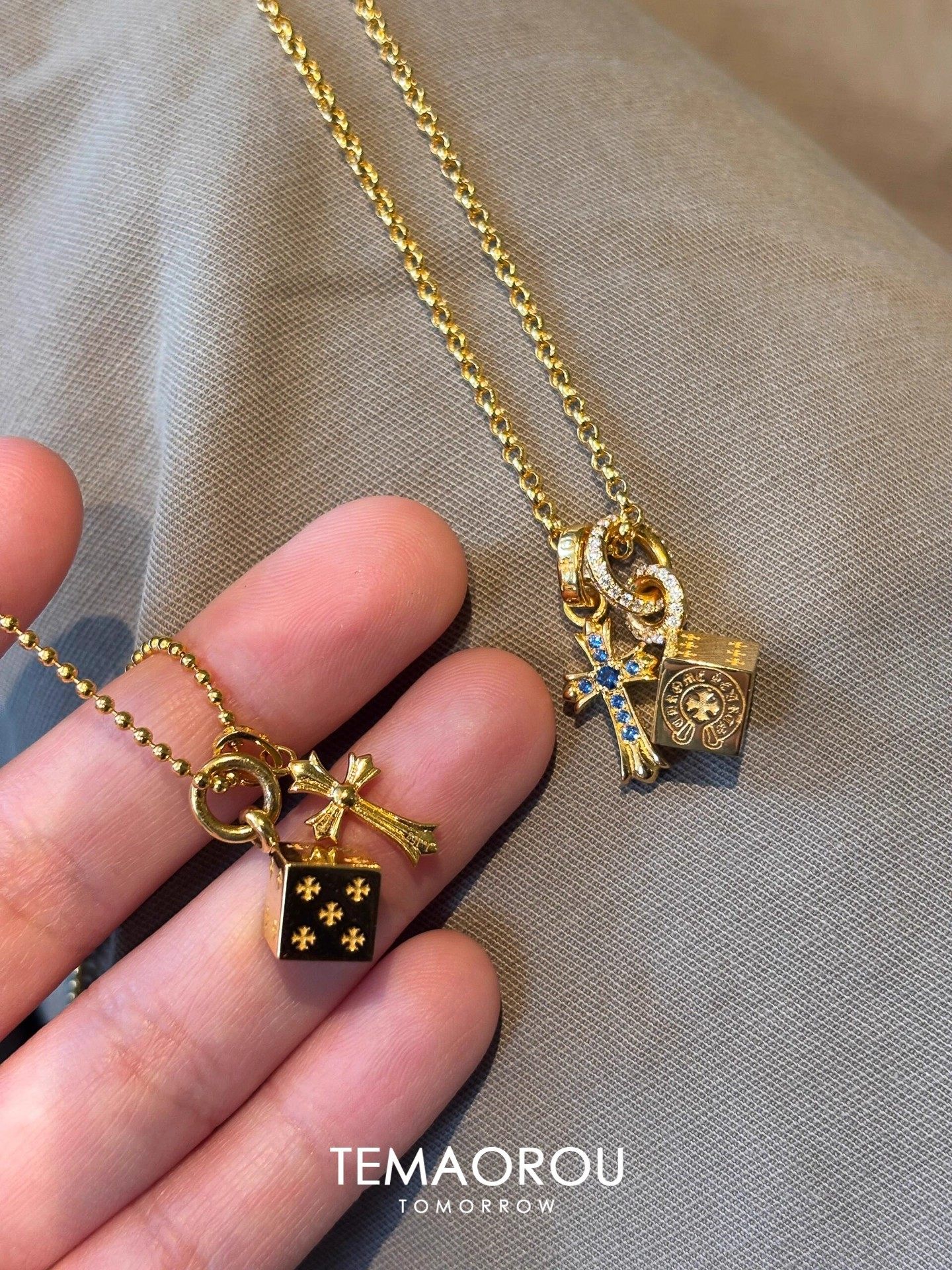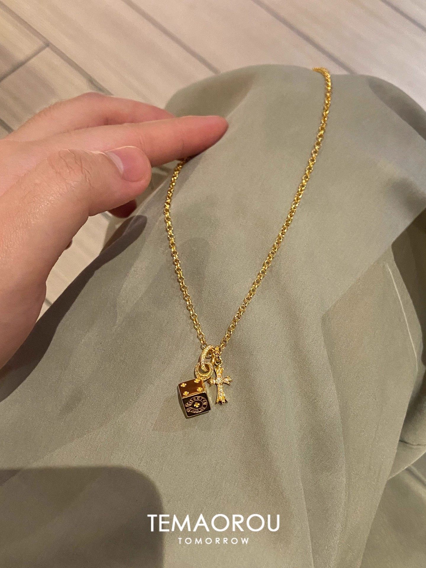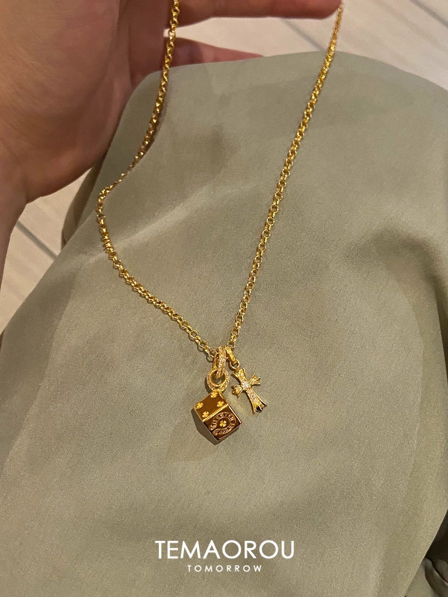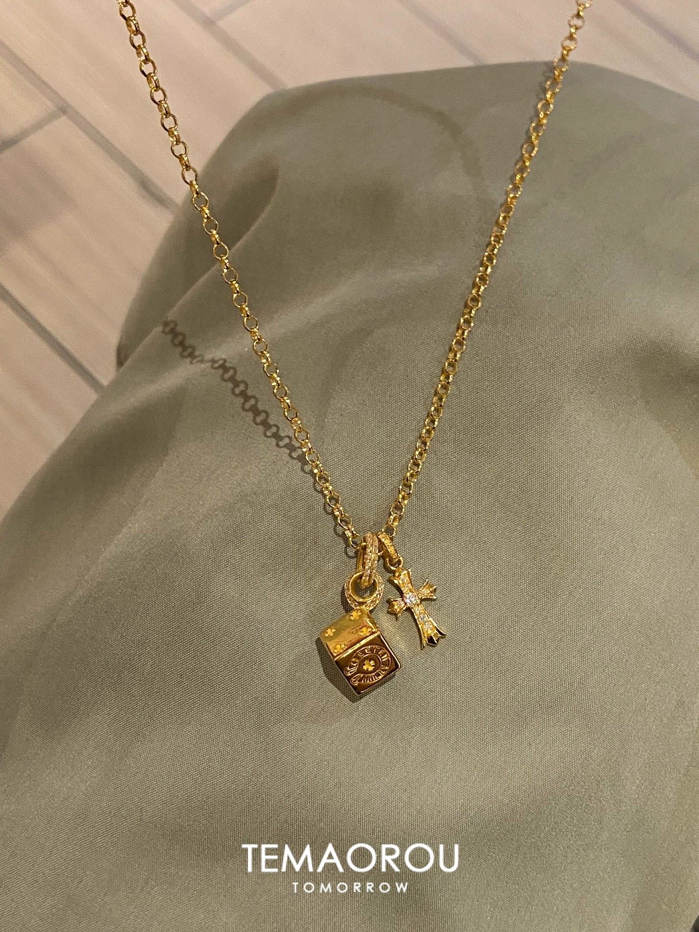 The Style Is Super Cool! Vintage Cross Solid Dice Pendant Necklace with a Light Luxury Design Sweater Chain Accessory