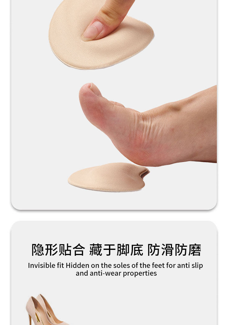High-Heeled Shoes Sponge Forefoot Pad Comfortable Invisible Self-Adhesive Half-Size Pad Women's Soft Particle Non-Slip Shock-Absorbing Forefoot Pad