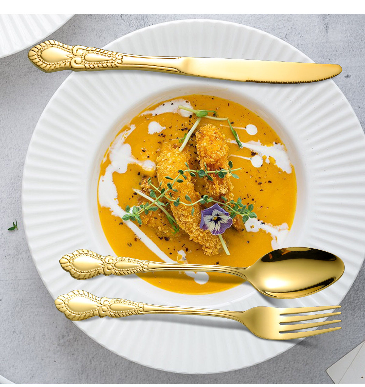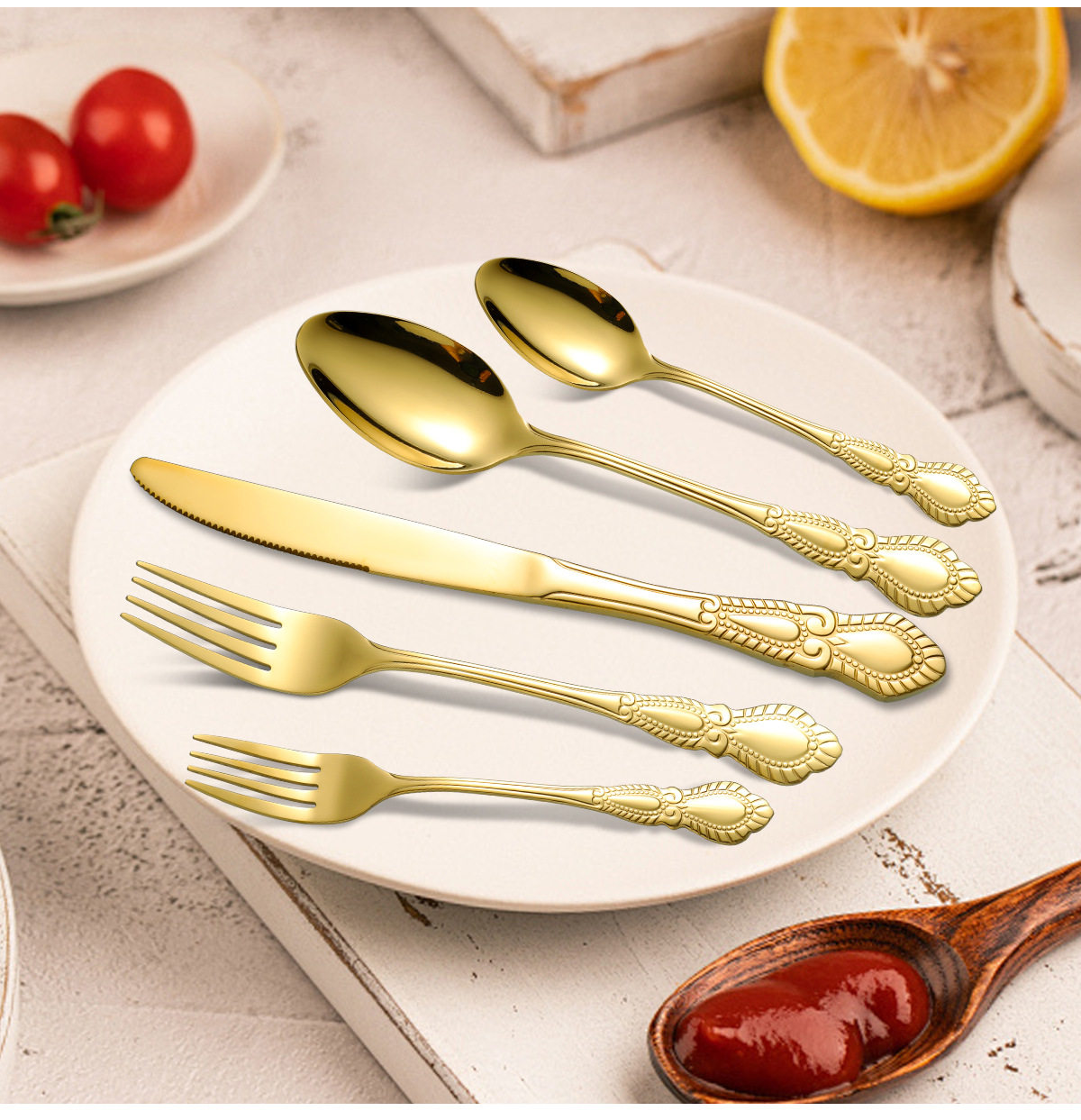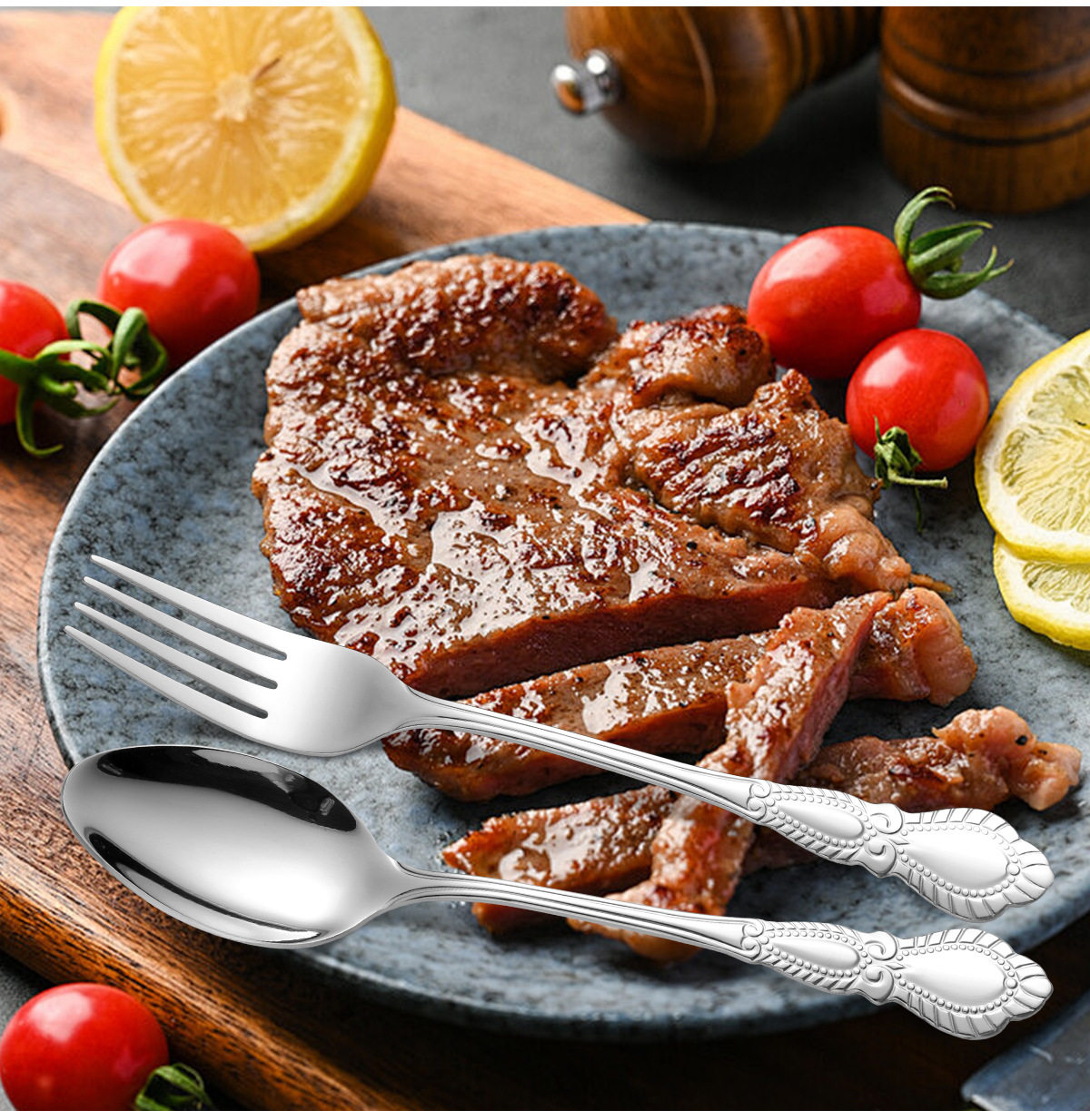 Cross-Border Amazon Stainless Steel Tableware Peacock Flower Knife, Fork and Spoon Set Western Steak Knife and Fork Hotel Dessert Spoon