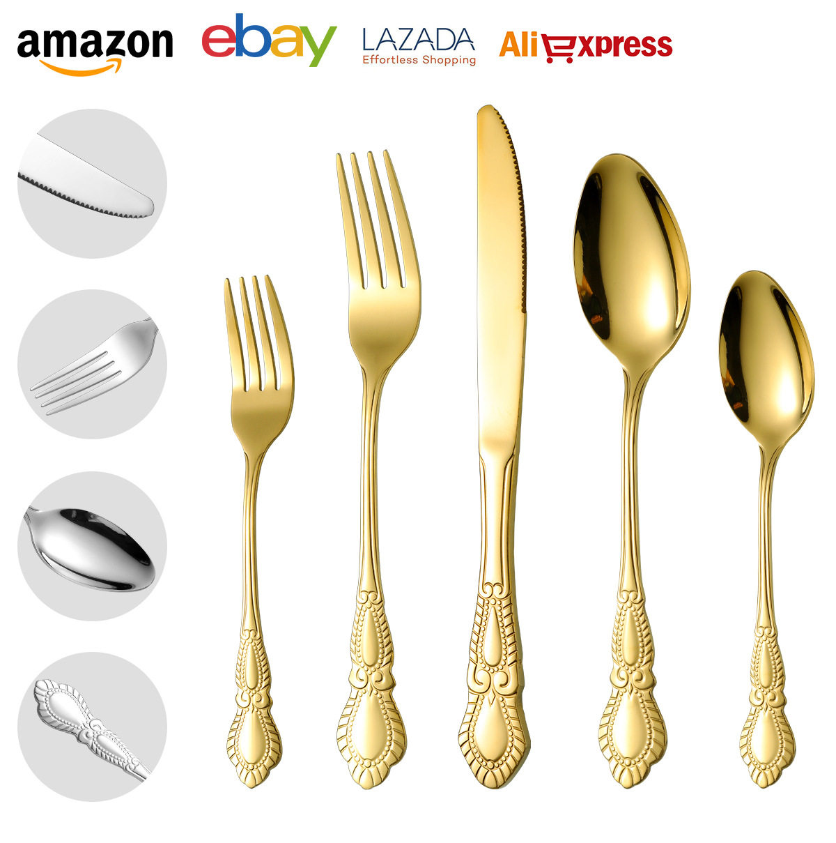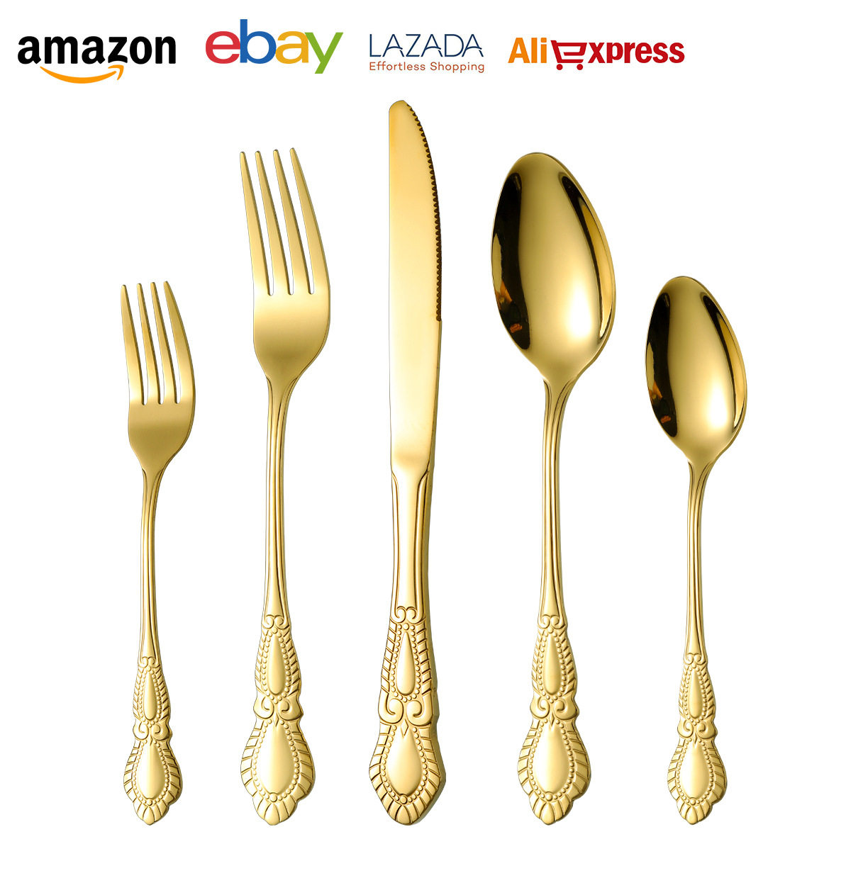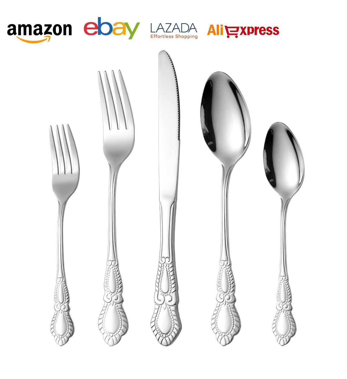 Cross-Border Amazon Stainless Steel Tableware Peacock Flower Knife, Fork and Spoon Set Western Steak Knife and Fork Hotel Dessert Spoon