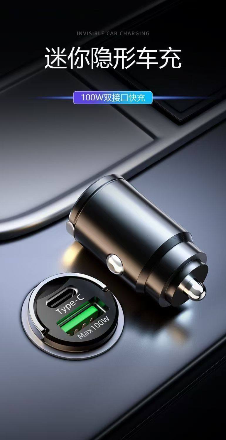 12V24V Universal Super Fast Charging Car Charger One to Two Cigarette Lighter Hidden Apple Mobile Phone Flash Charging