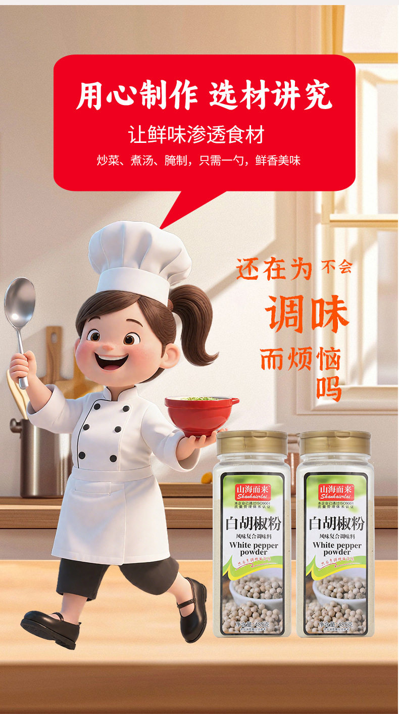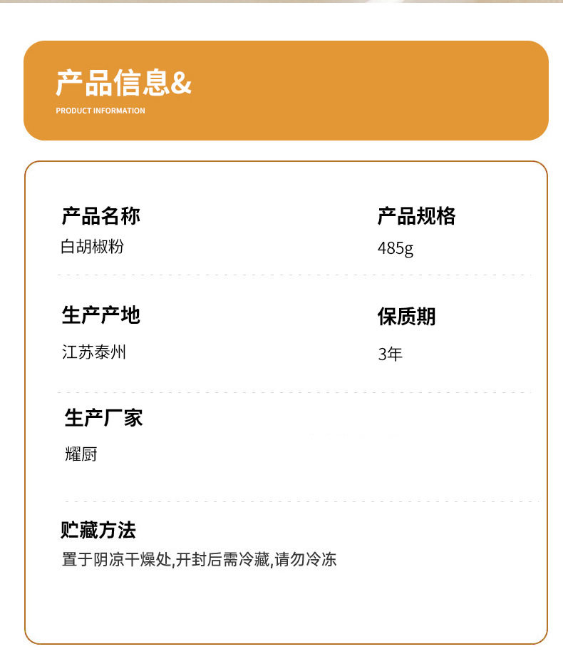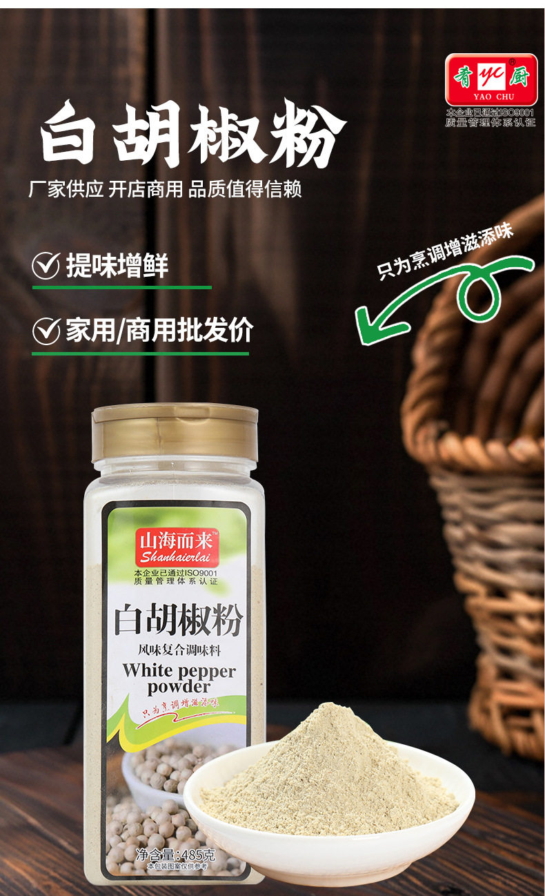 Yaochu 485g White Pepper Powder, Removes Fishy Smell and Enhances Flavor, Seasoning for Cooking, Braised Dishes, Catering, Spice Pepper Powder