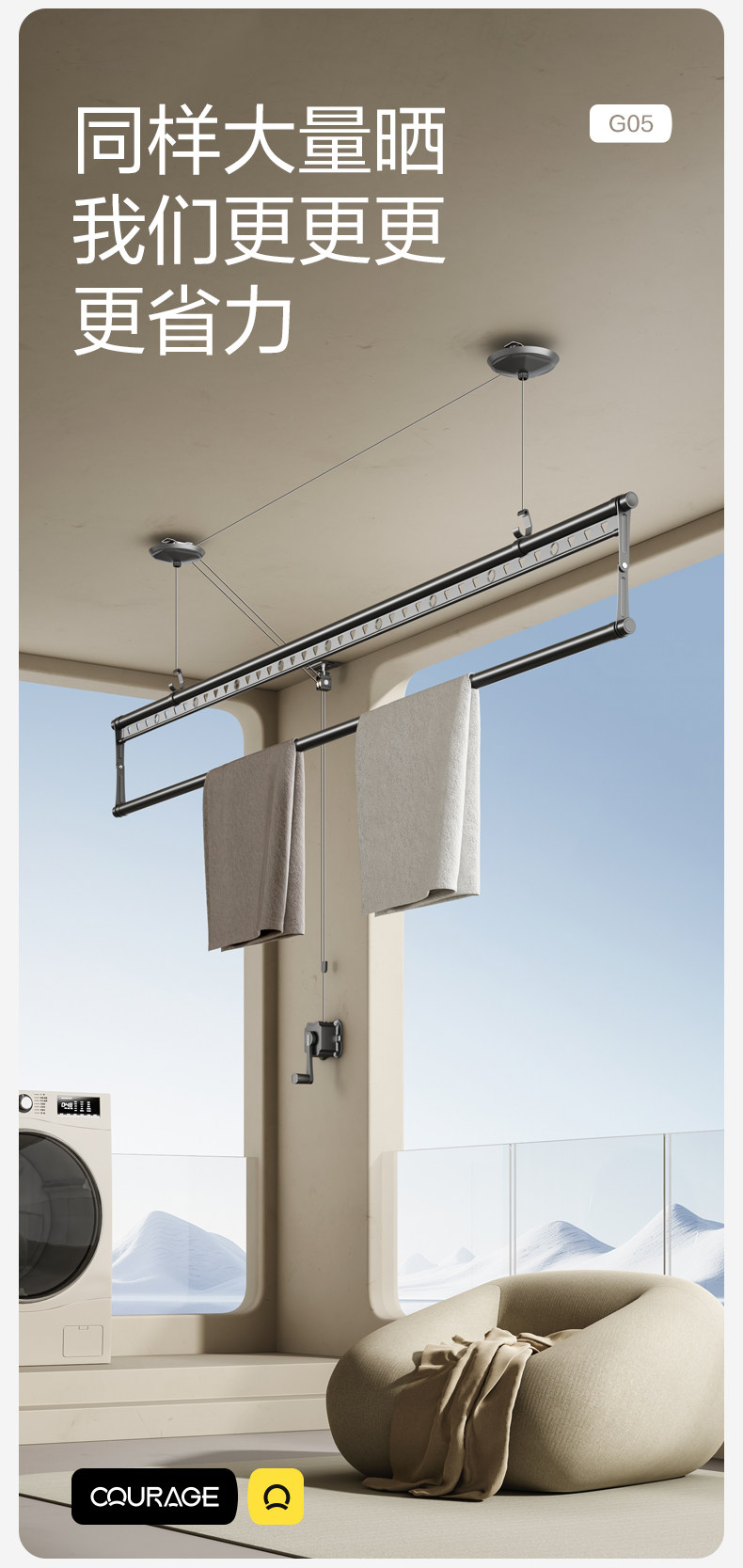 [Government Subsidy 25% off] Single-Pole Clothes Drying Rack Adjustable Hand Crank Balcony Single-Row Clothes Drying Rod Single Manual