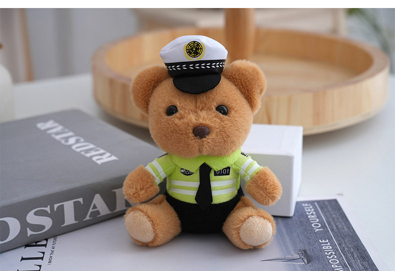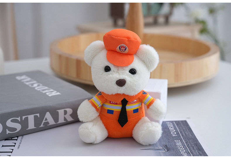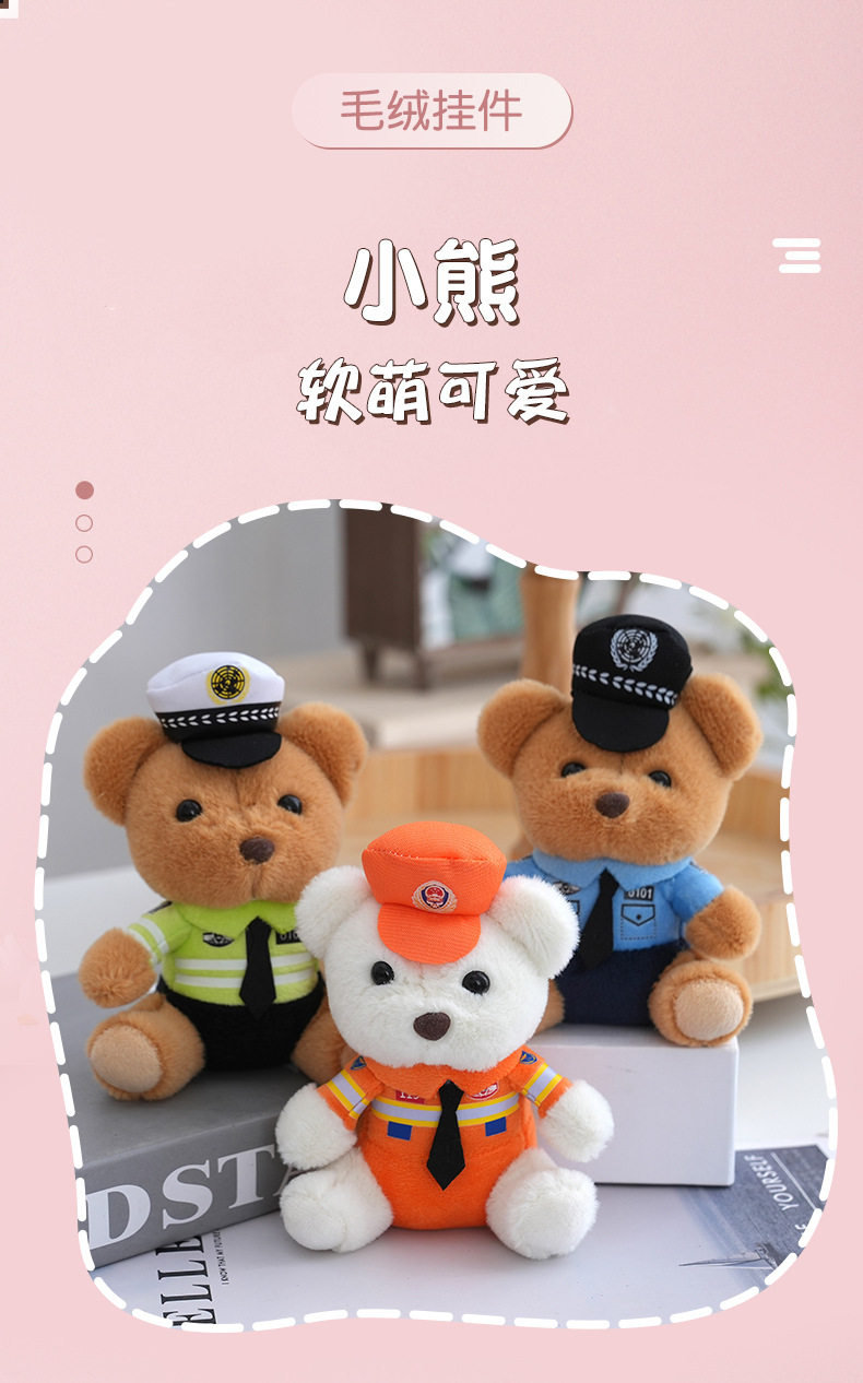 Internet Celebrity Police Bear Plush Doll Cute Fire Bear Doll Pendant Backpack Decoration Teddy Bear Keychain