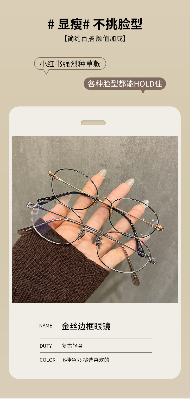 | Glasses style | Round frame |