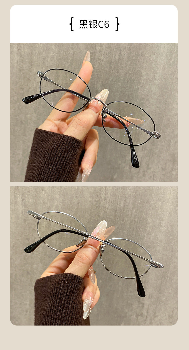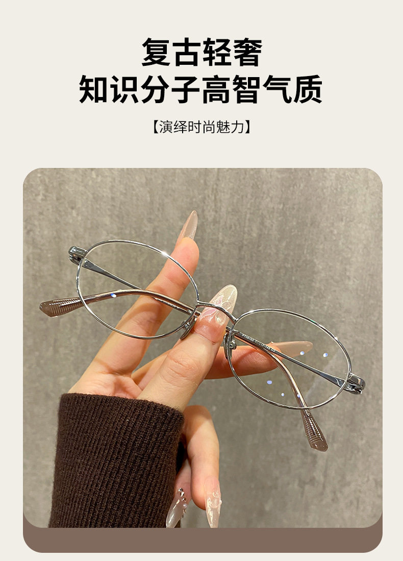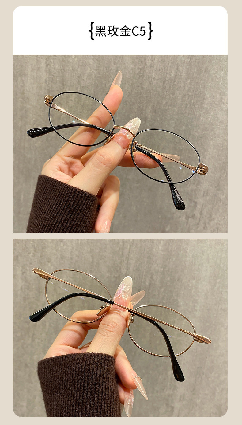 Korean Style Natural Cool Oval Small Size Myopia Glasses for Women, Danyang Prescription Glasses, Internet Celebrity Blue Light Blocking Glasses Frames Wholesale