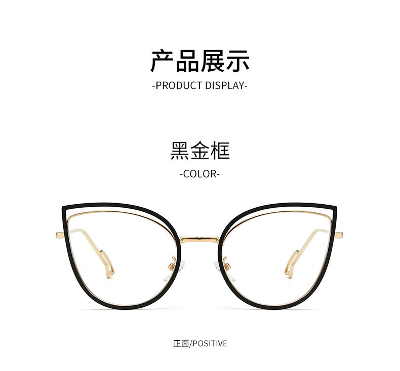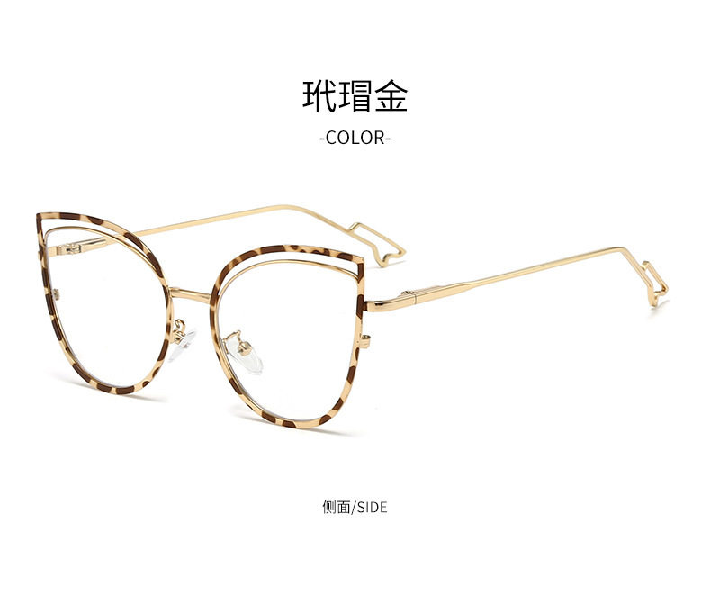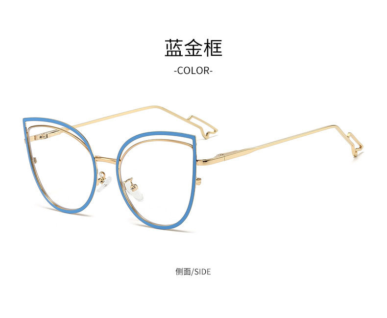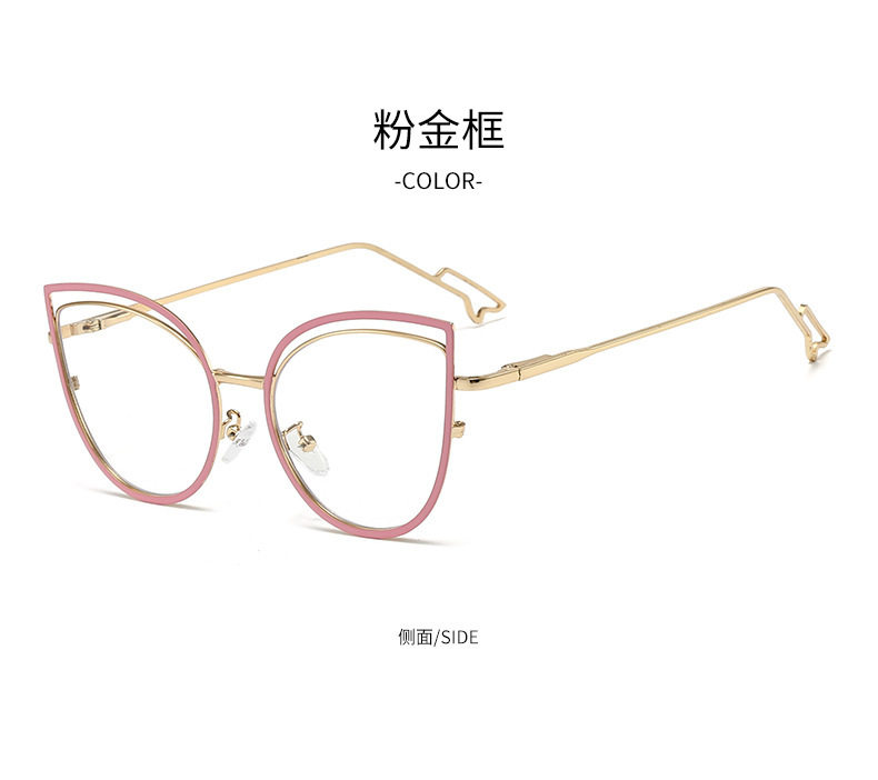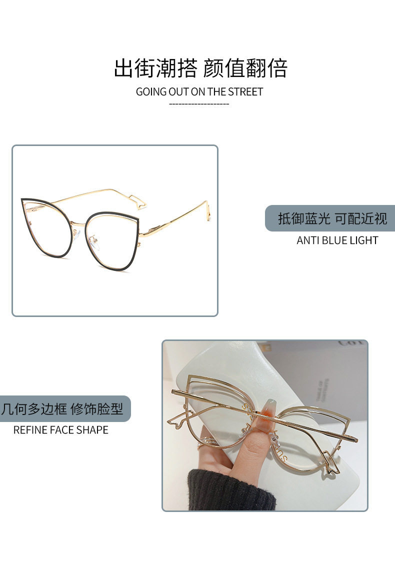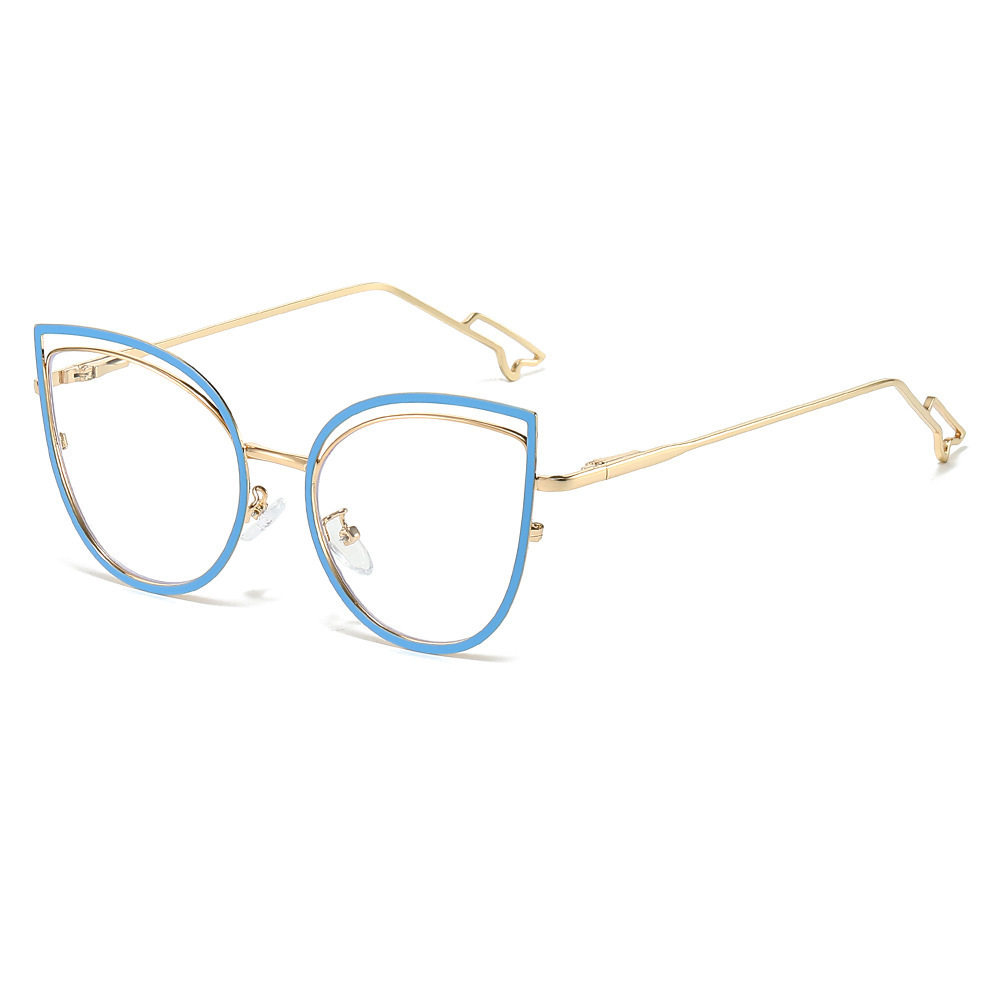 European and American Cat-Eye Hollow Glasses Frame Cross-Border Trendy Metal Spring Legs Anti-Blue Light Glasses Can Be Matched with Myopia Glasses Frames