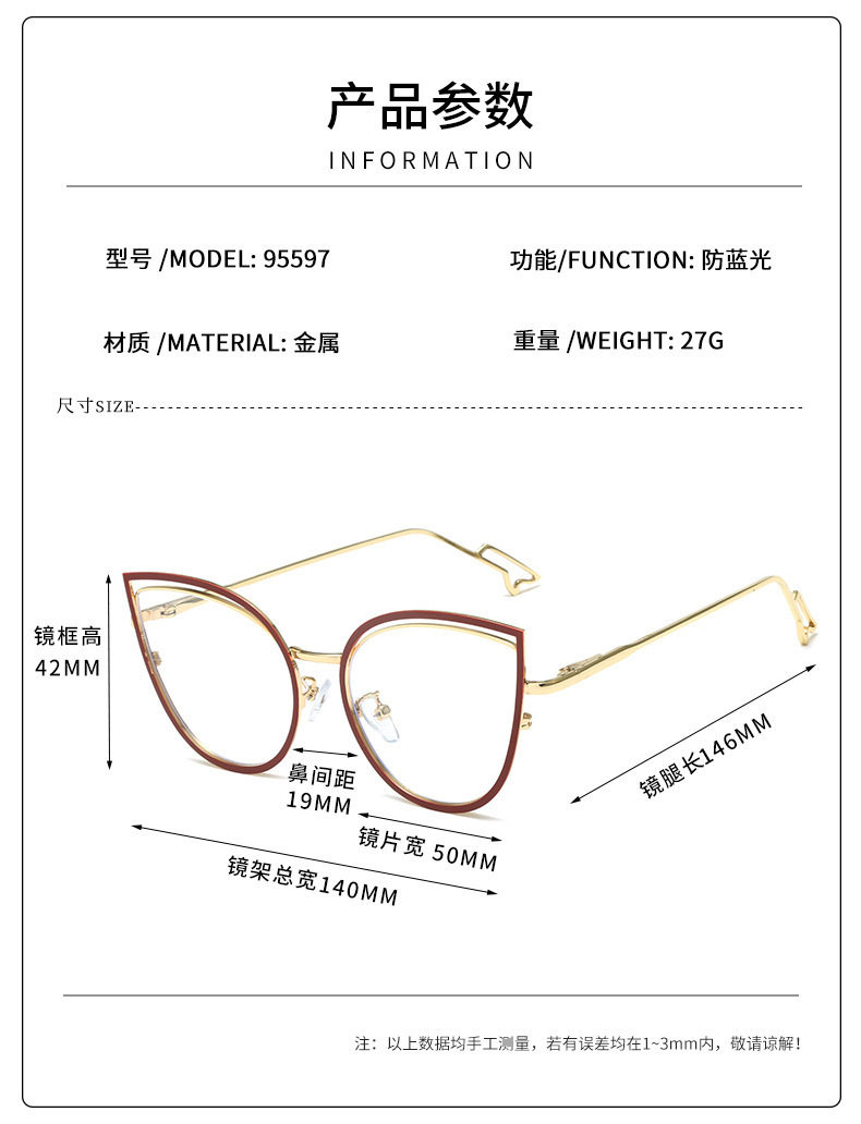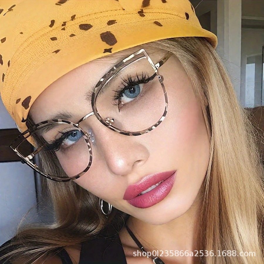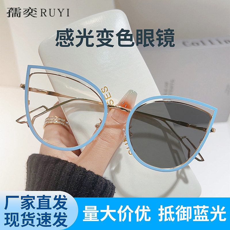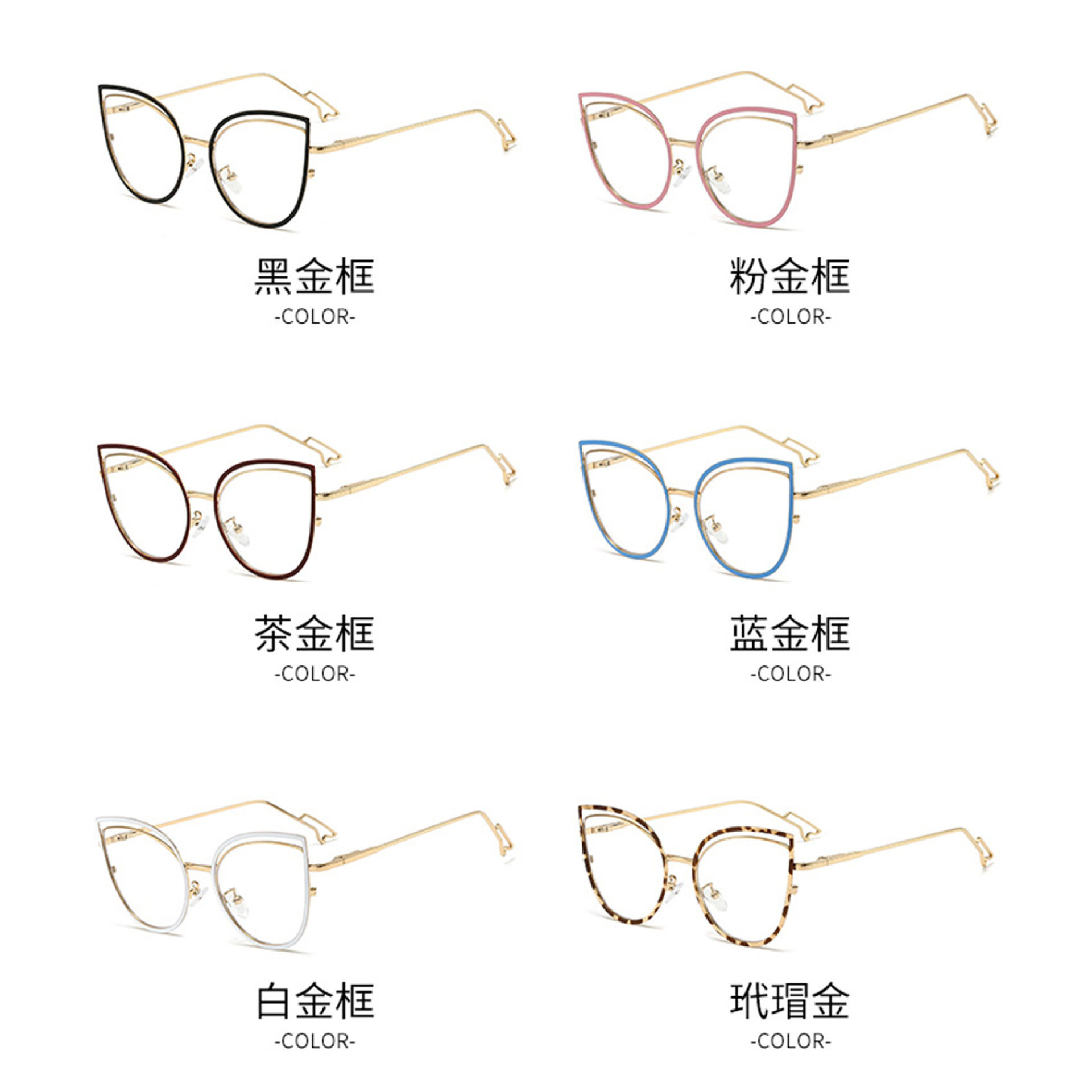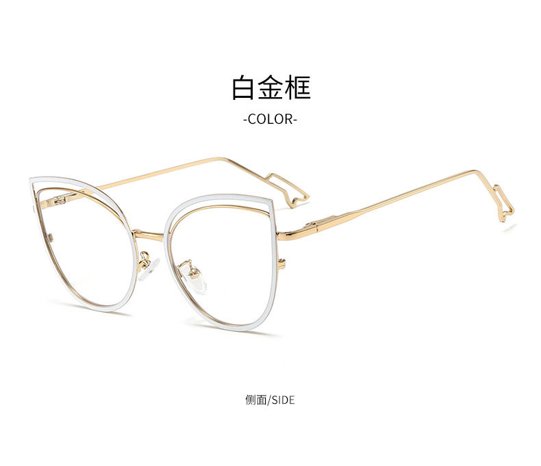European and American Cat-Eye Hollow Glasses Frame Cross-Border Trendy Metal Spring Legs Anti-Blue Light Glasses Can Be Matched with Myopia Glasses Frames