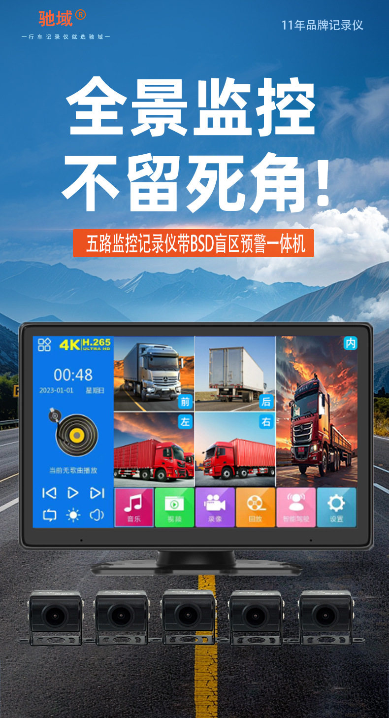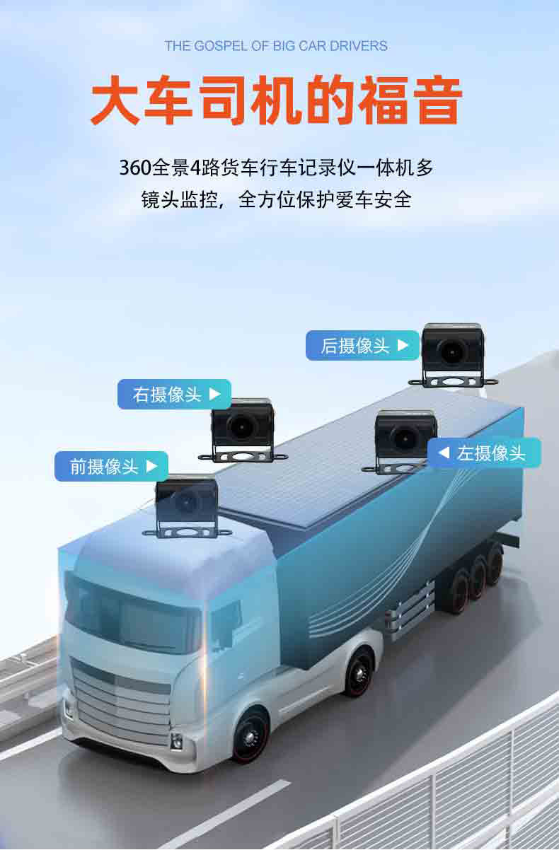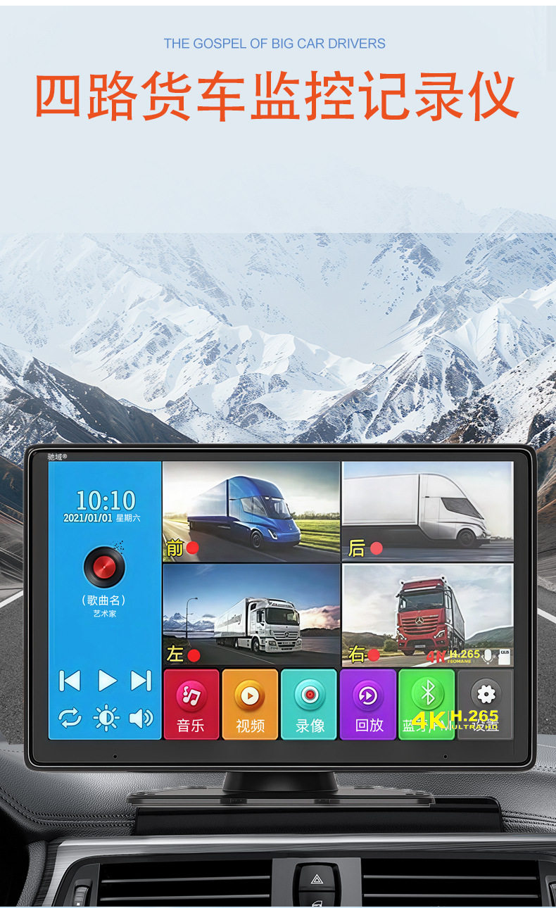 Chiyu Large Truck Four-Way Monitoring Recorder High-Definition Full-Color Night Vision Camera Reversing Image Comes with Entertainment
