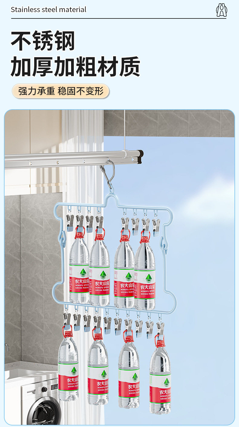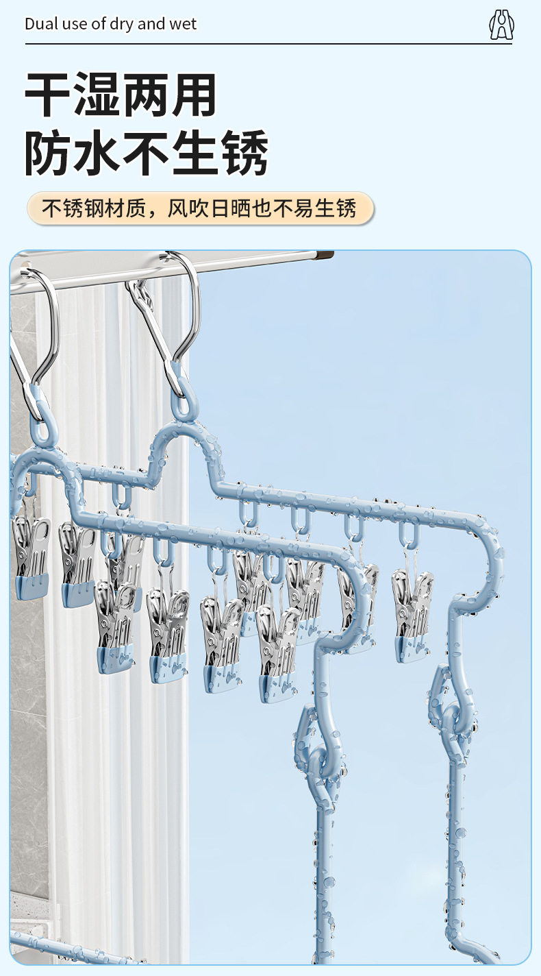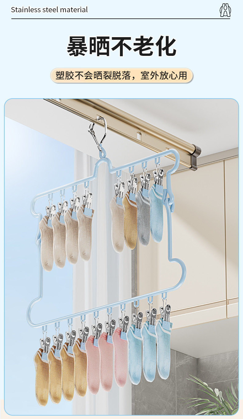 Folding Sock Drying Rack Balcony Clothes Rack Multi-Clip Stainless Steel Underwear Drying Rack Sock Drying Tool