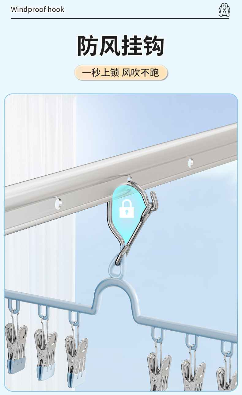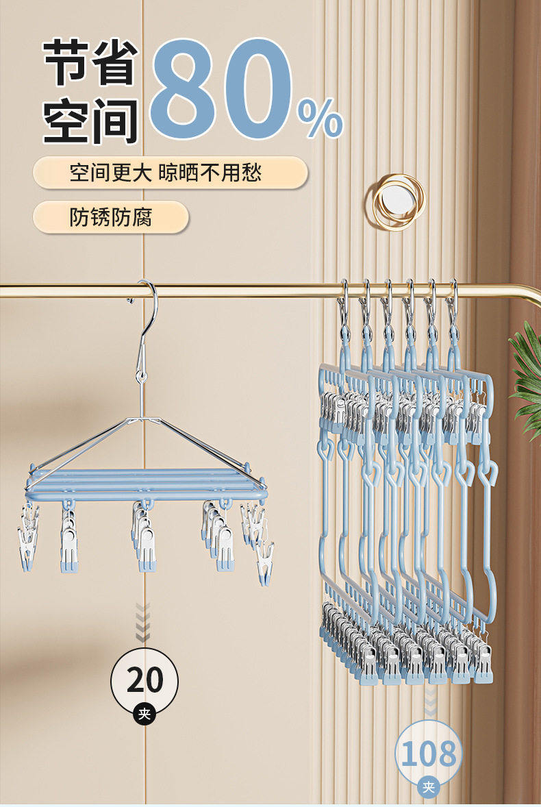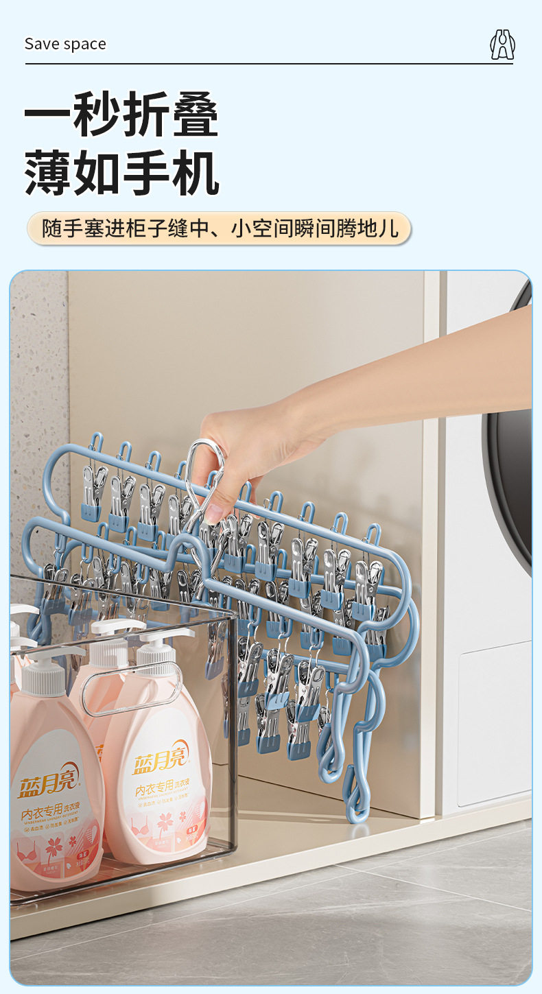 Folding Sock Drying Rack Balcony Clothes Rack Multi-Clip Stainless Steel Underwear Drying Rack Sock Drying Tool