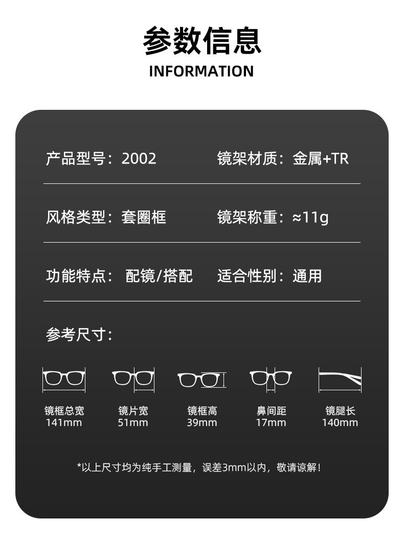 | Frame color | C6 transparent gray circle gun gray frame,C2 bright black frame,C3 transparent tea circle gold frame,C4 black circle silver frame,C5 transparent purple circle silver frame |