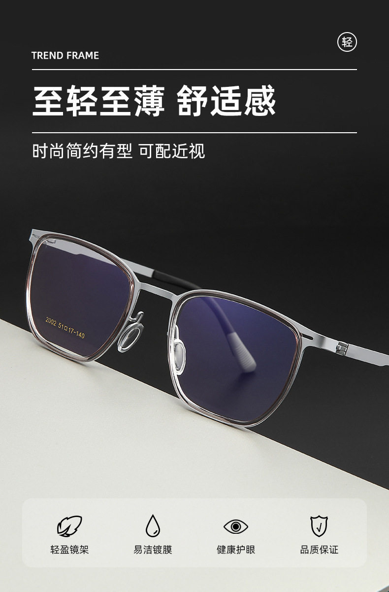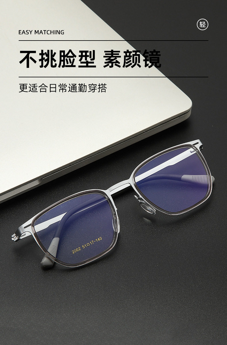 Linde Same Style Men's Lightweight Metal Glasses Frame Myopia Glasses Flat Glasses Eyebrow Frame 2002 Glasses Frame Wholesale