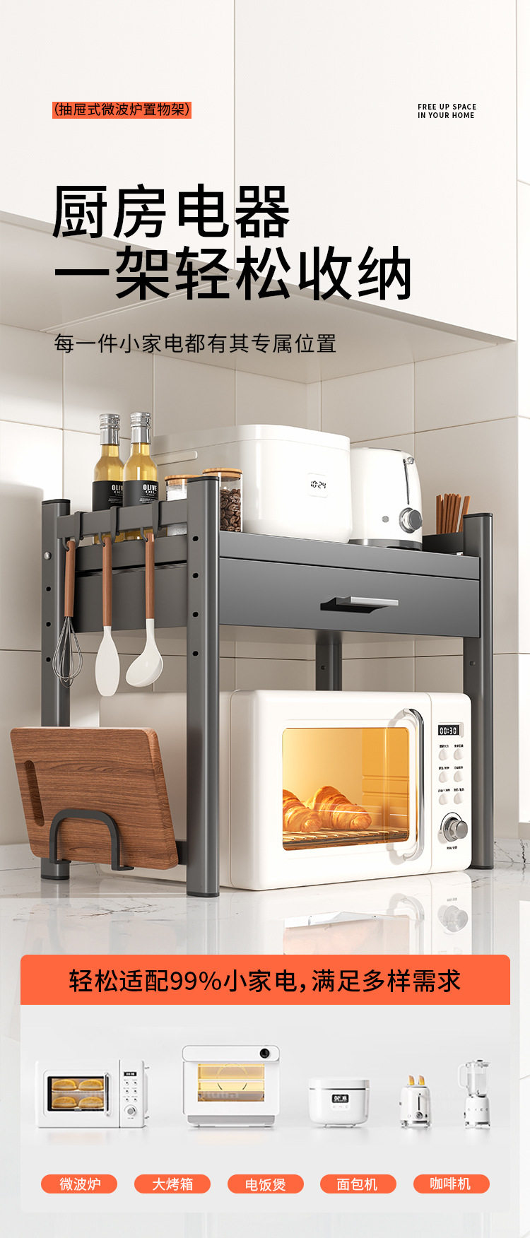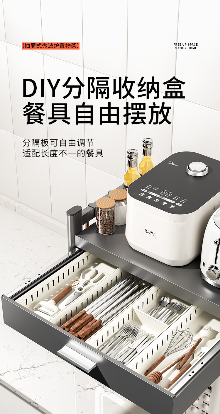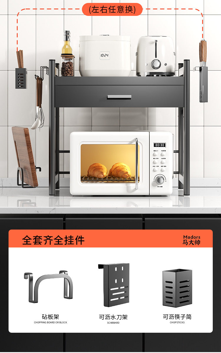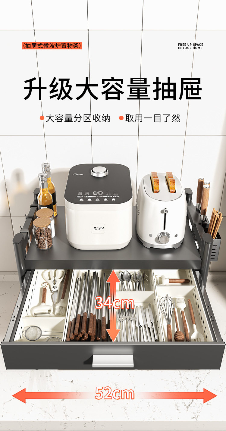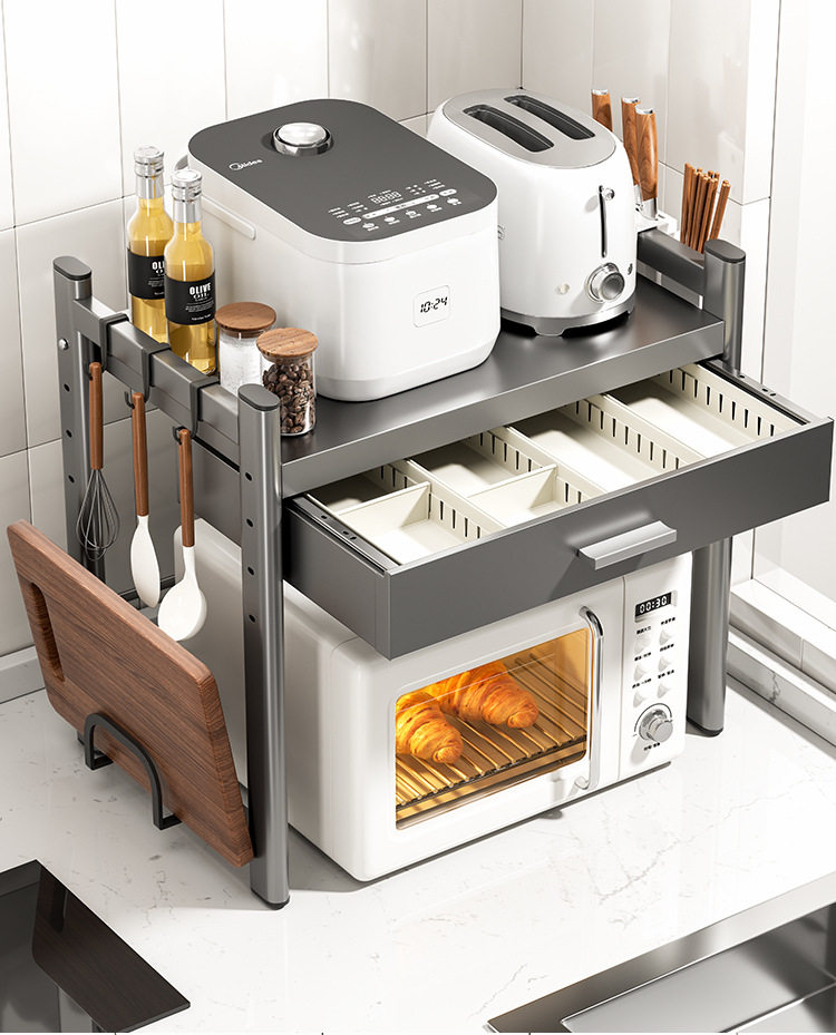 Kitchen Microwave Shelf with Drawers, Multi-Functional Countertop Storage Rack, Spice Storage Rack, 2026 New Model
