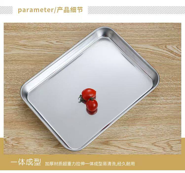 304 Household Rice Noodle Steaming Tray Rectangular Stainless Steel Plate Cold Noodle Tool Cold Noodle Plate Rice Noodle Tray