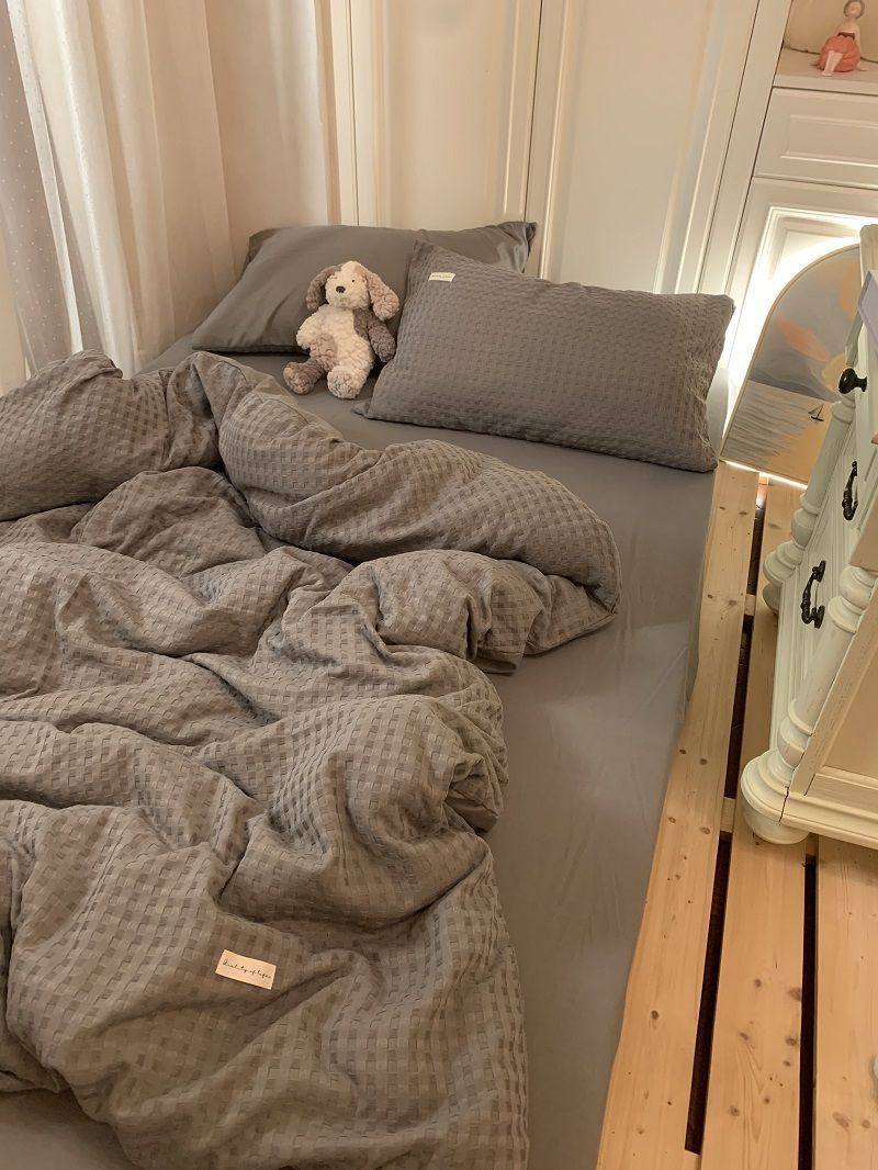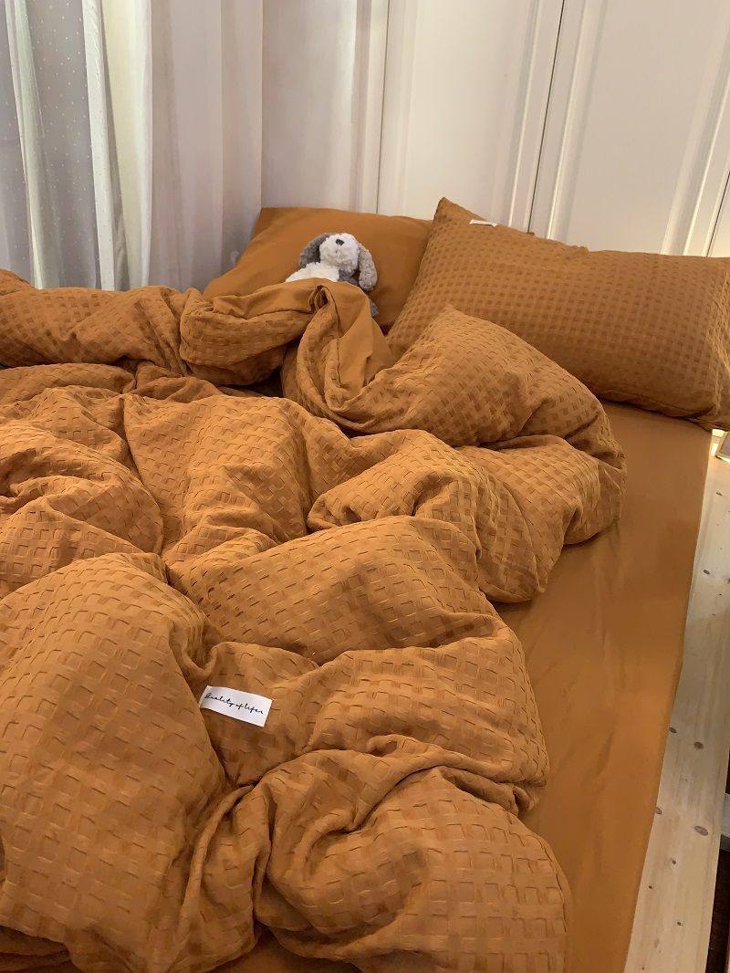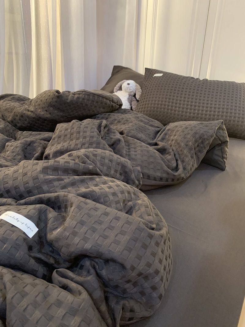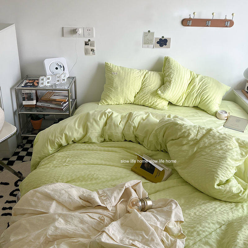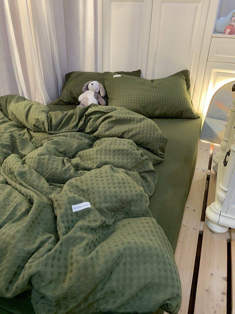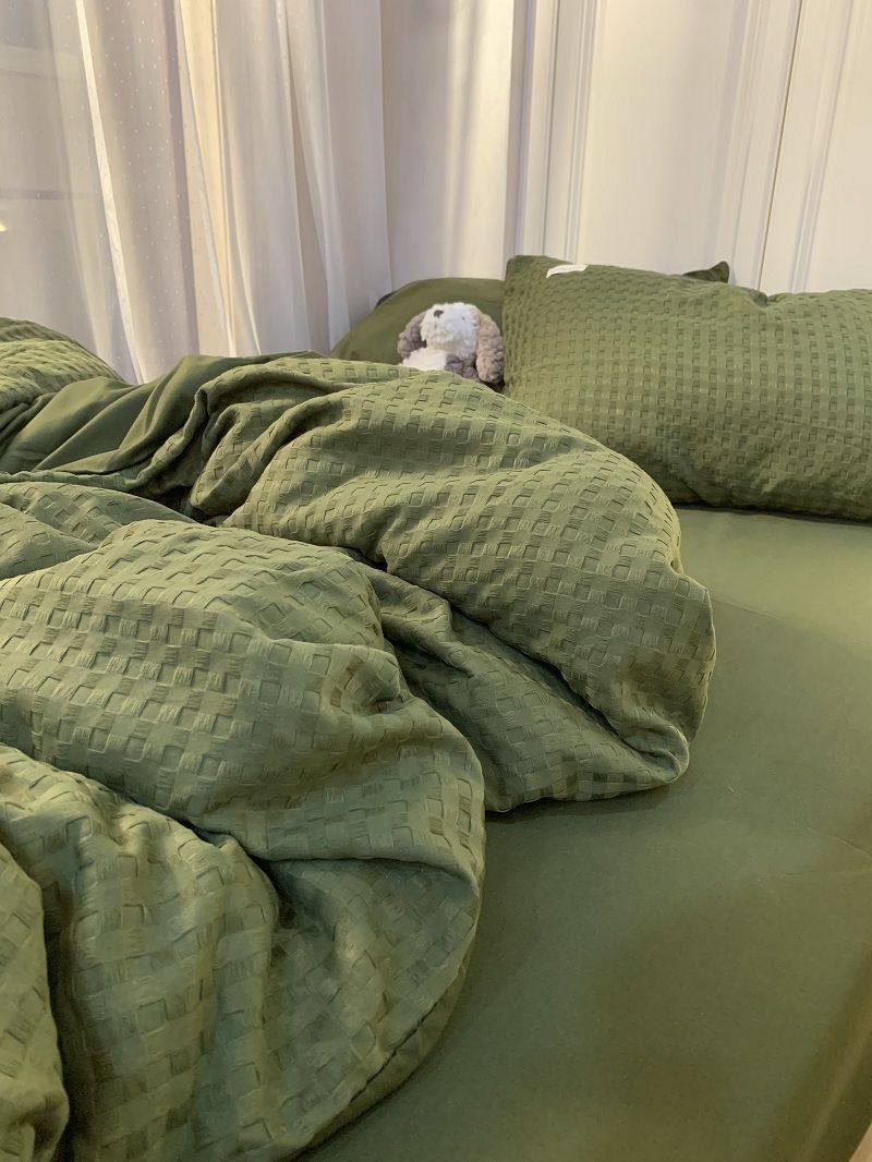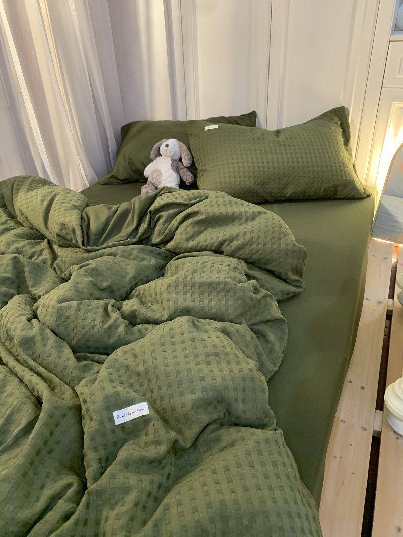 Light Luxury Washed Cotton Waffle Bedding Four-Piece Set Olive Green Duvet Cover Bed Sheet Dormitory Three-Piece Set Wholesale