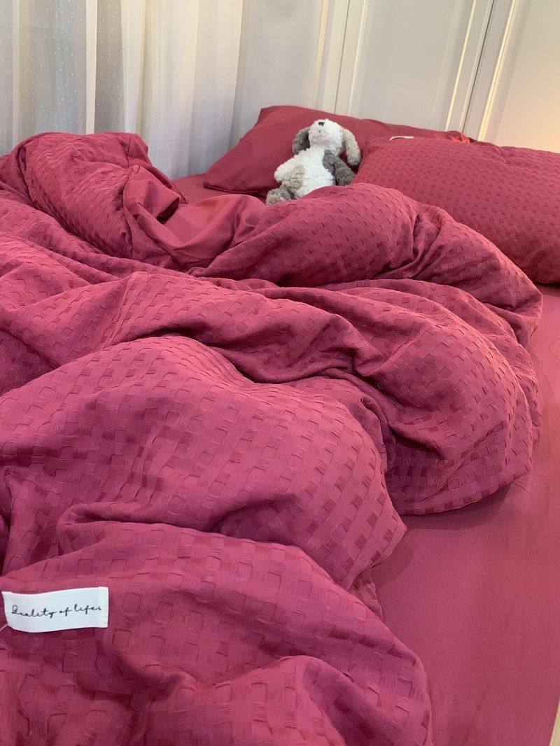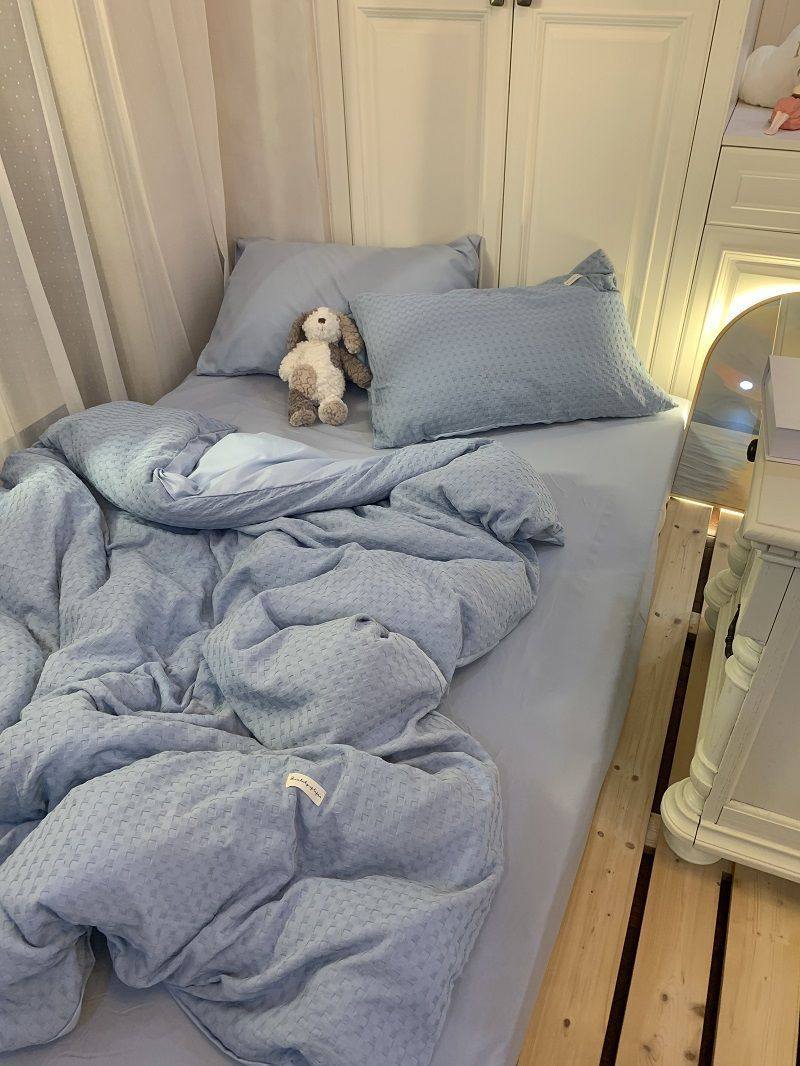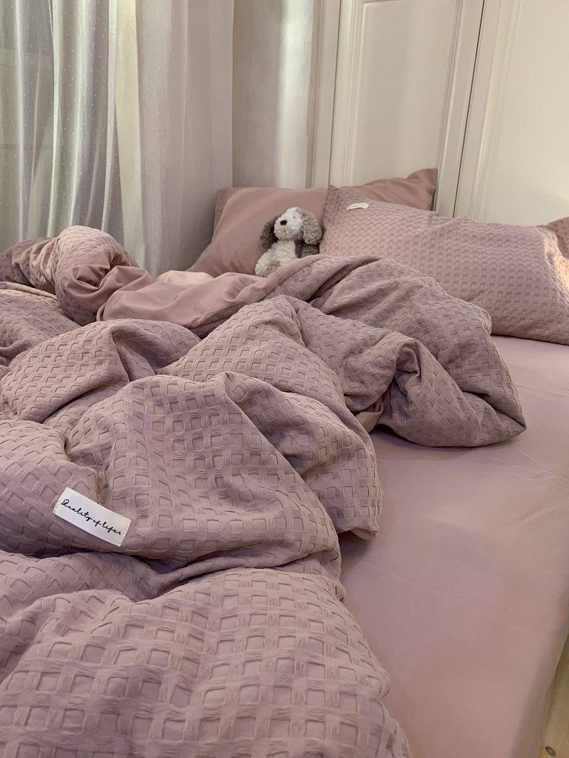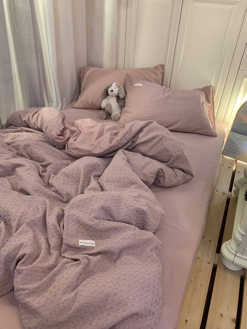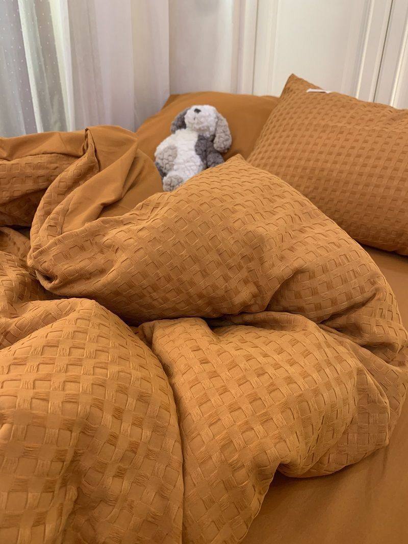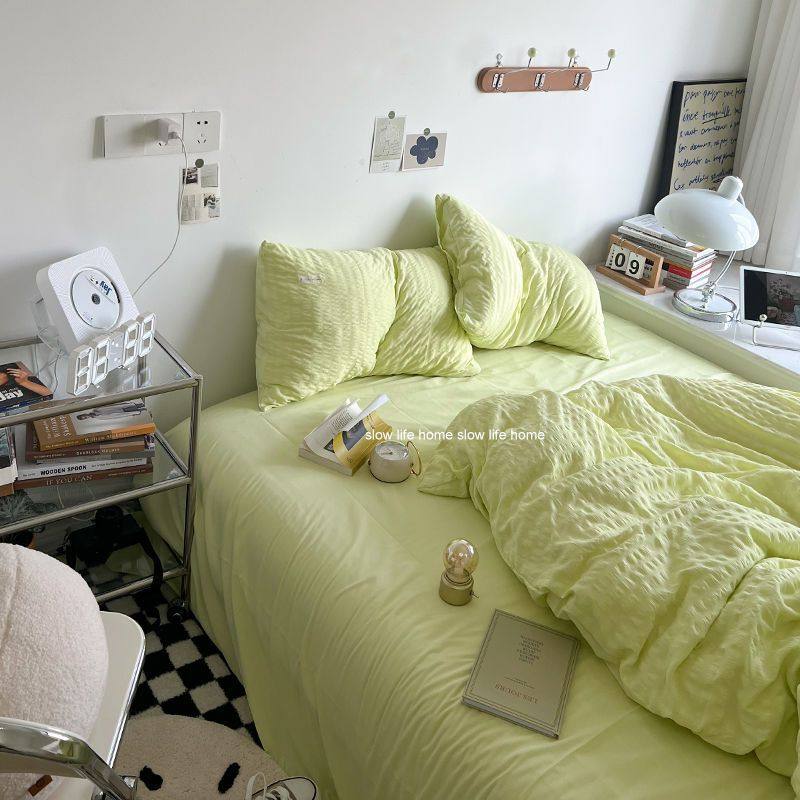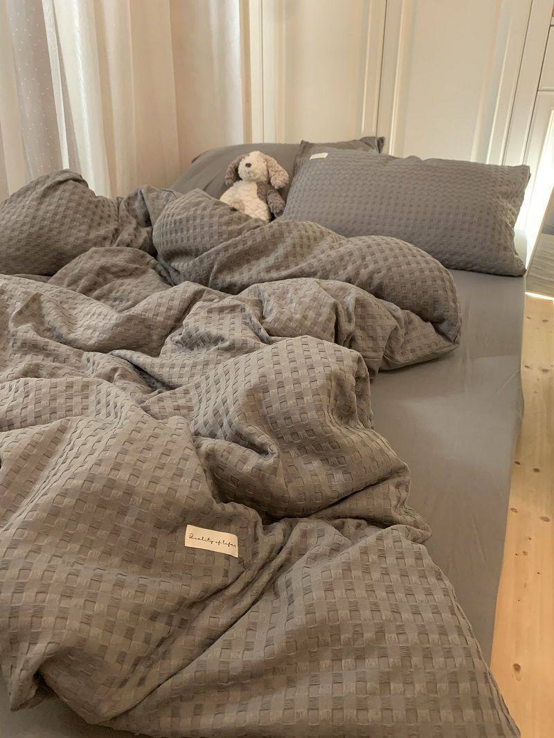 Light Luxury Washed Cotton Waffle Bedding Four-Piece Set Olive Green Duvet Cover Bed Sheet Dormitory Three-Piece Set Wholesale