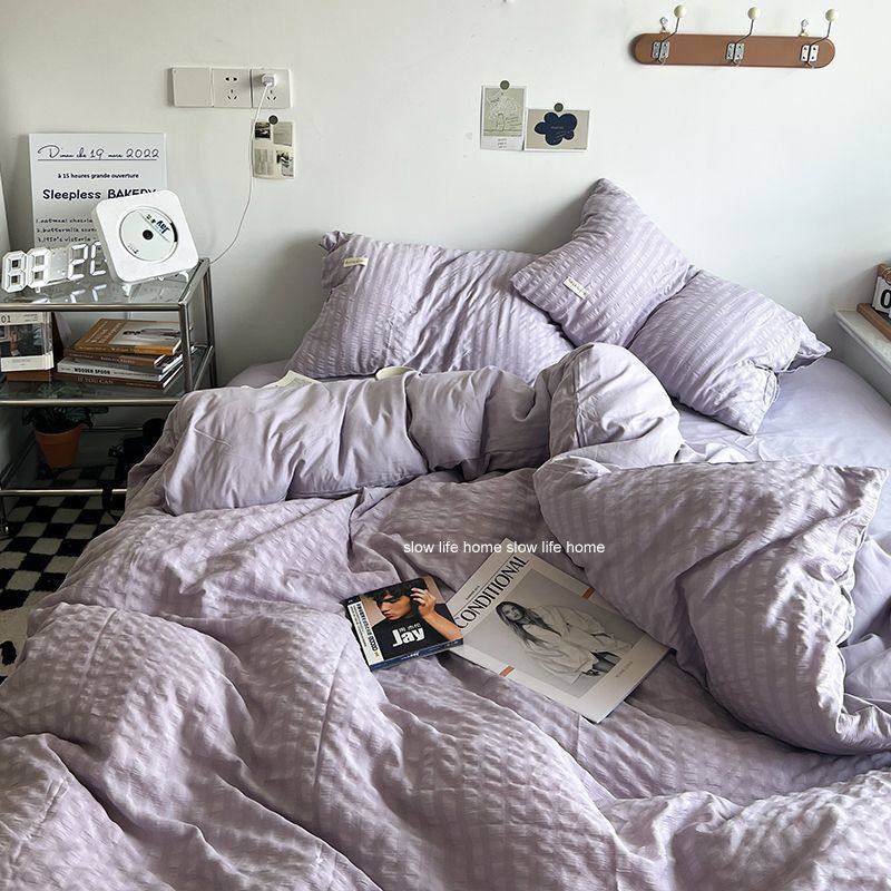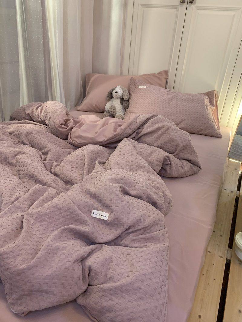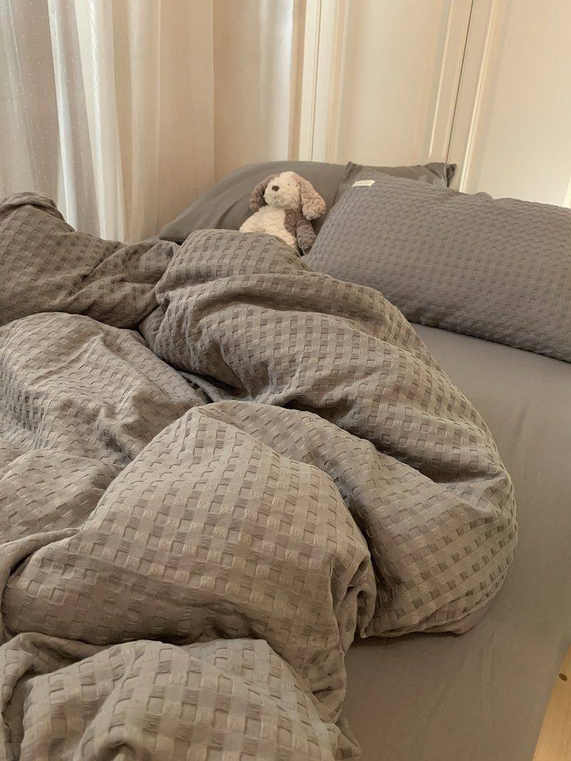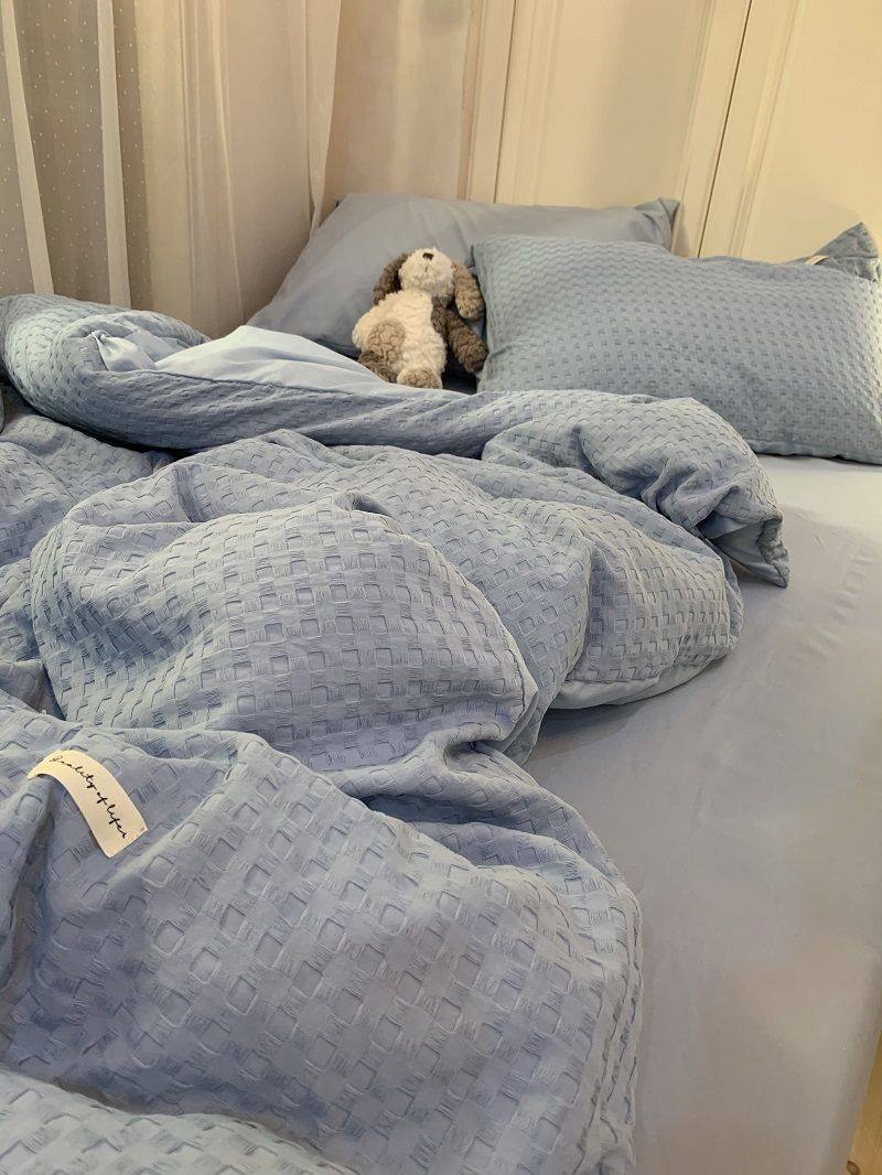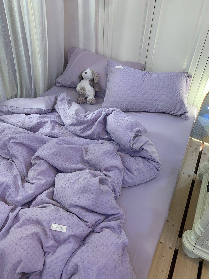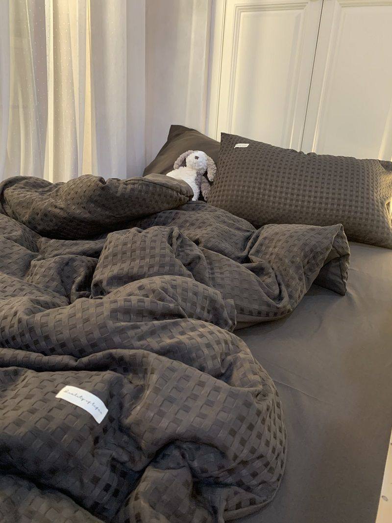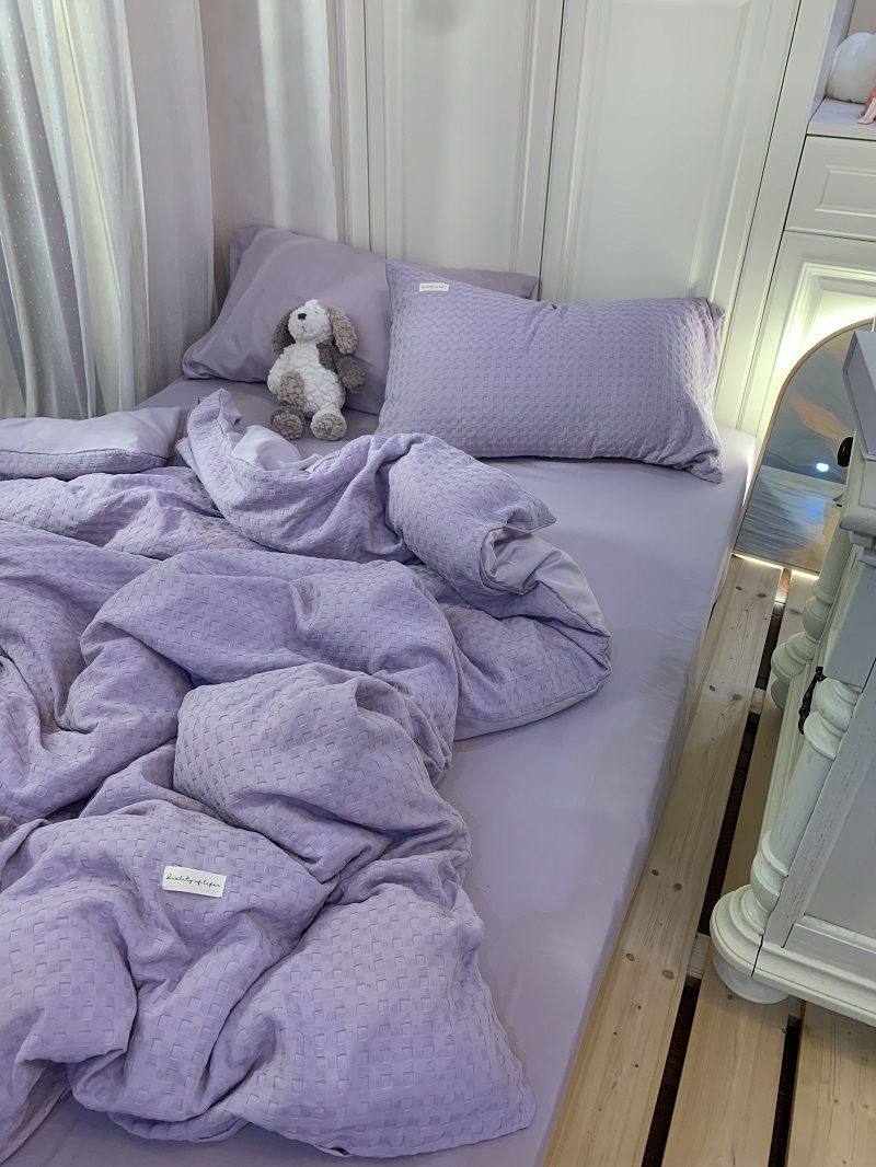 Light Luxury Washed Cotton Waffle Bedding Four-Piece Set Olive Green Duvet Cover Bed Sheet Dormitory Three-Piece Set Wholesale