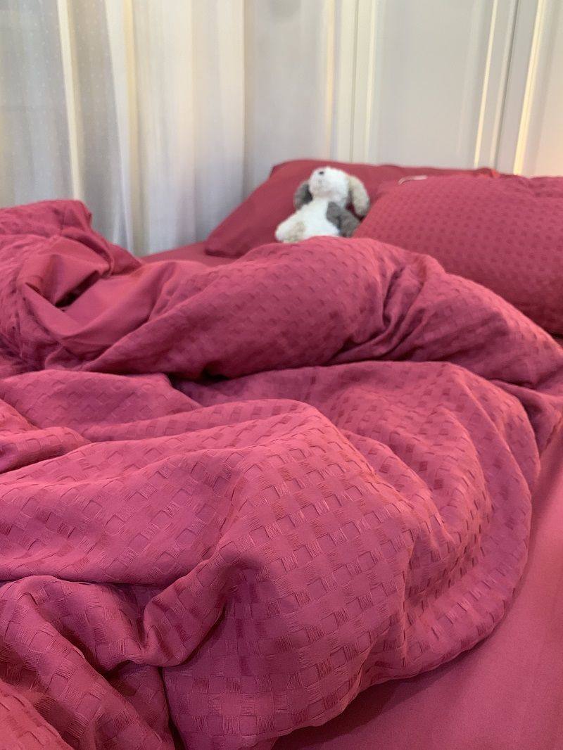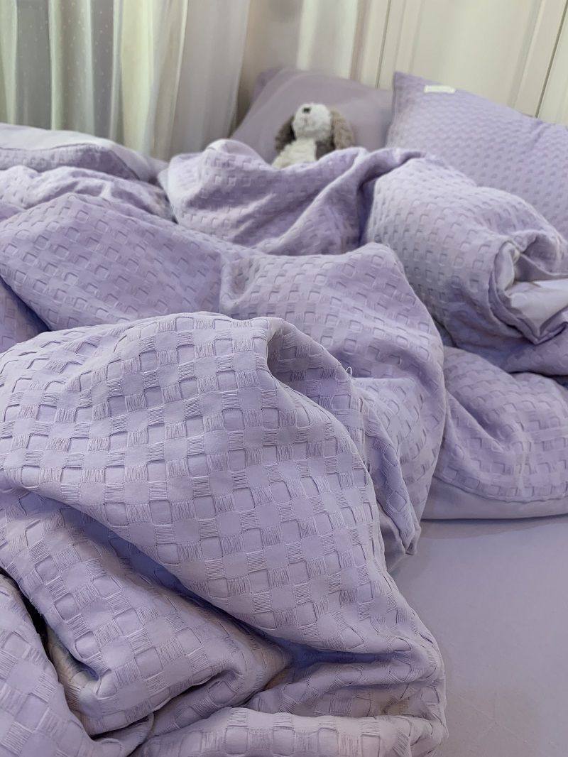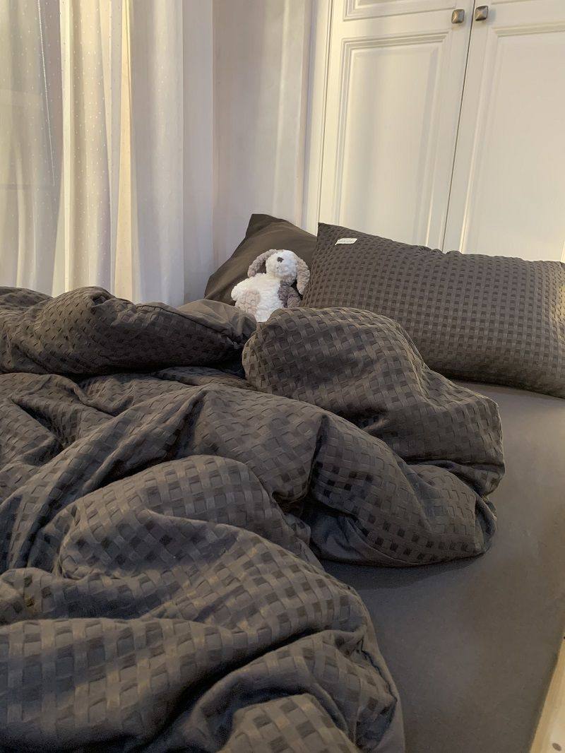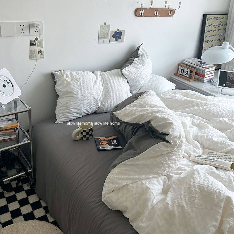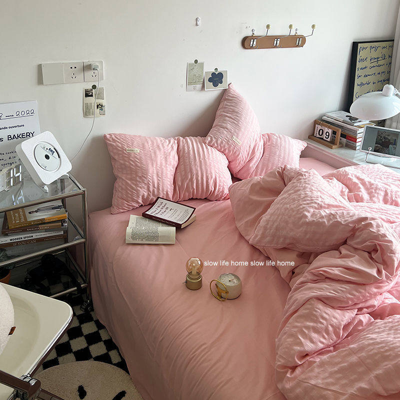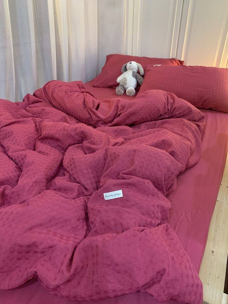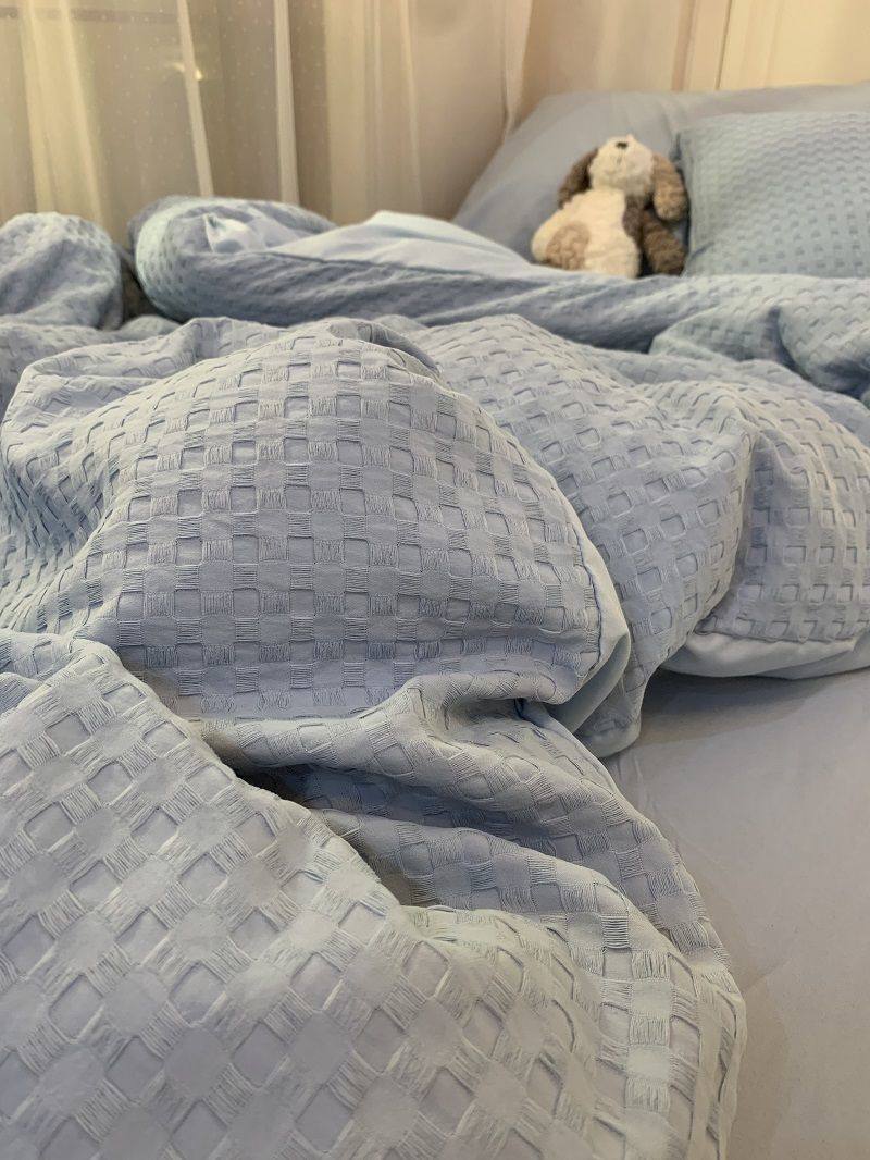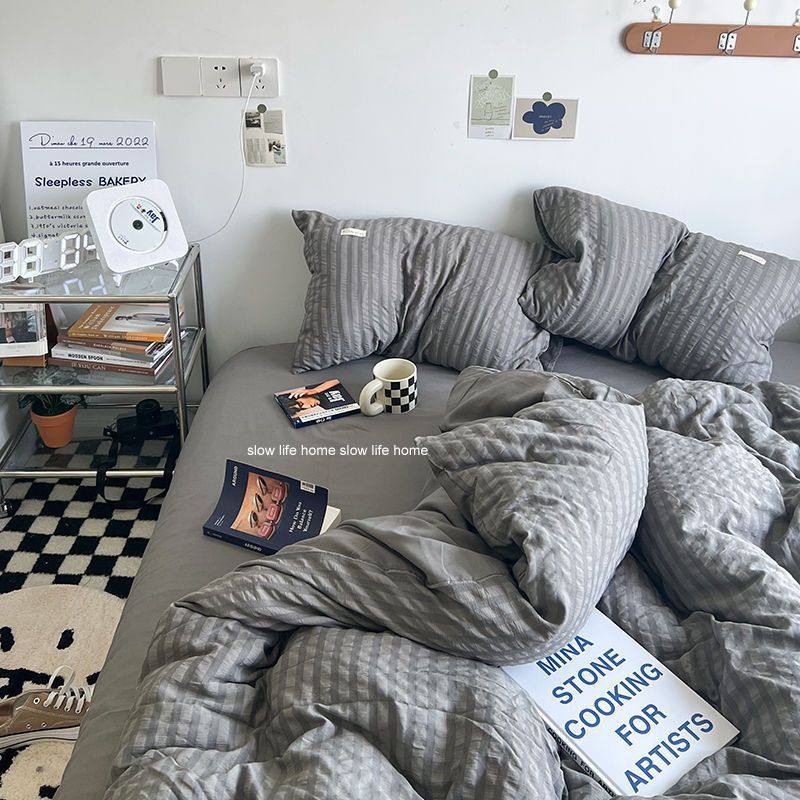 Light Luxury Washed Cotton Waffle Bedding Four-Piece Set Olive Green Duvet Cover Bed Sheet Dormitory Three-Piece Set Wholesale