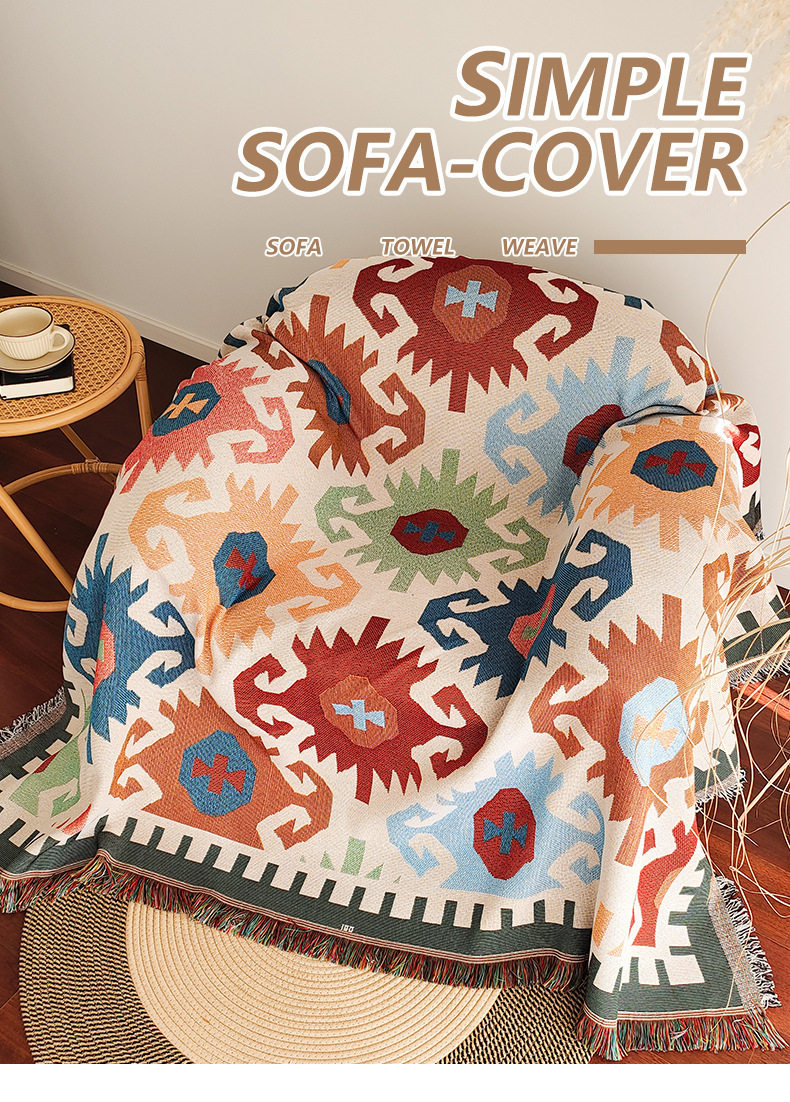 Casual Modern Single and Double Sofa Towel Cushion Full Cover Non-Slip European Style Line Blanket Geometric Tablecloth Chair Cushion Cover Thick Polyester Cotton