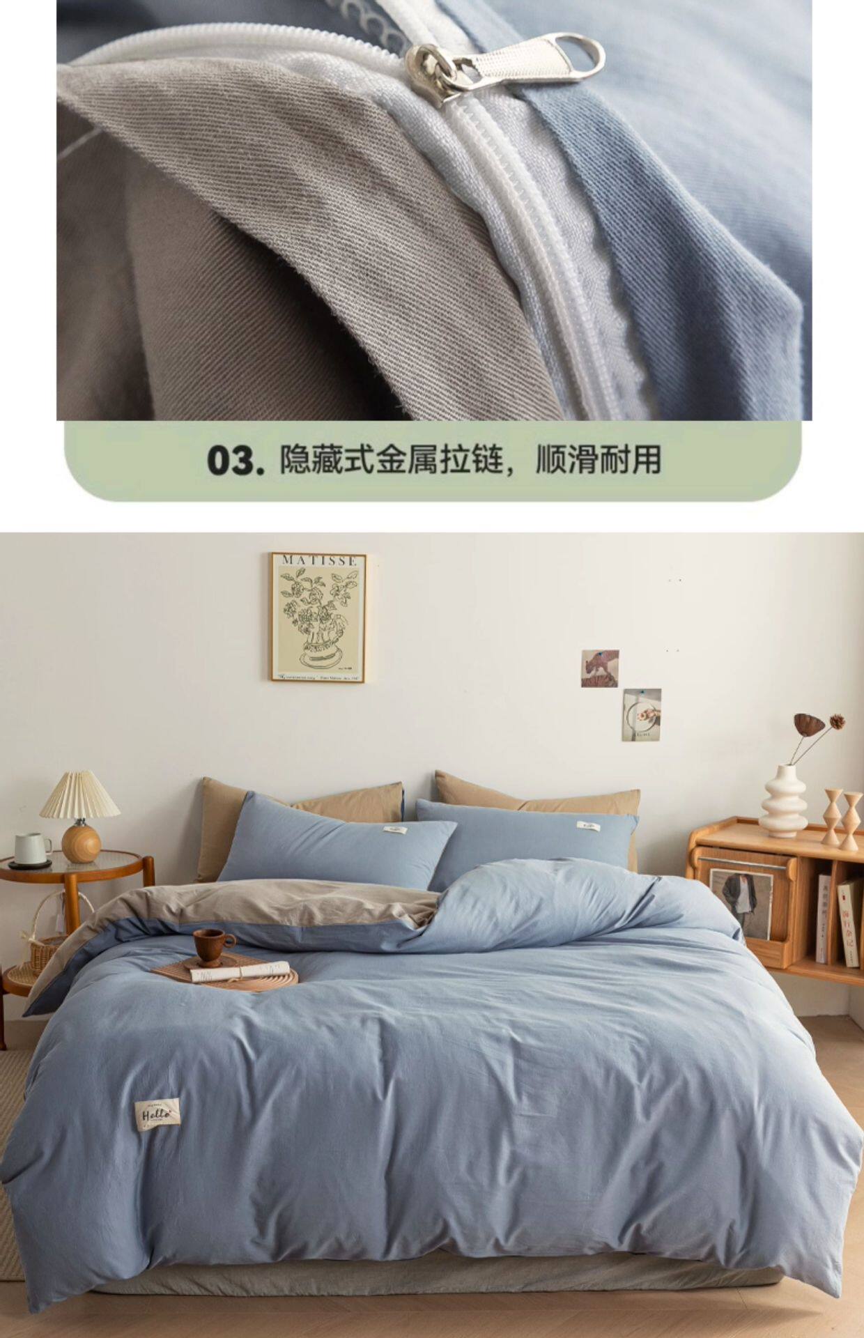 | Dimensions | 1.2m three-piece bed sheet set [suitable for 150x200cm quilt core, bed sheet 160*230cm, pillowcase 48*74cm*1],1.5m four-piece bed sheet set [quilt cover 200*230cm, bed sheet 230*250cm, pillowcase 48*74cm*2],1.8m four-piece bed sheet set [quilt cover 200*230cm, bed sheet 230*250cm, pillowcase 48*74cm*2],2.0m four-piece bed sheet set [quilt cover 220*240cm, bed sheet 245*270cm, pillowcase 48*74cm*2],1.5m four-piece fitted sheet set [quilt cover 200*230cm, fitted sheet 150*200cm, pillowcase 48*74cm*2],1.8m four-piece fitted sheet set [quilt cover 200*230cm, fitted sheet 180*200cm, pillowcase 48*74cm*2] |