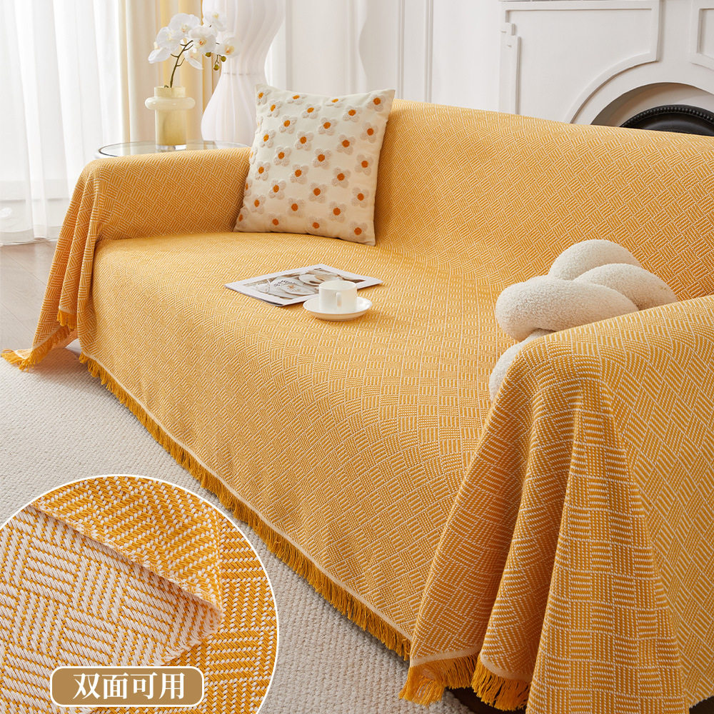 √ Sofa Towel Cover Ins Style Double-Sided Cotton Yarn Blanket Simple One-Piece Sofa Cushion Cover All-Inclusive Cover