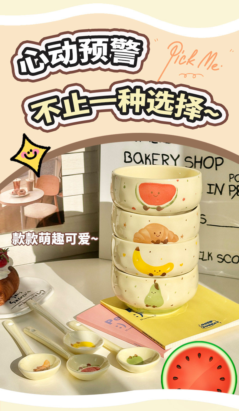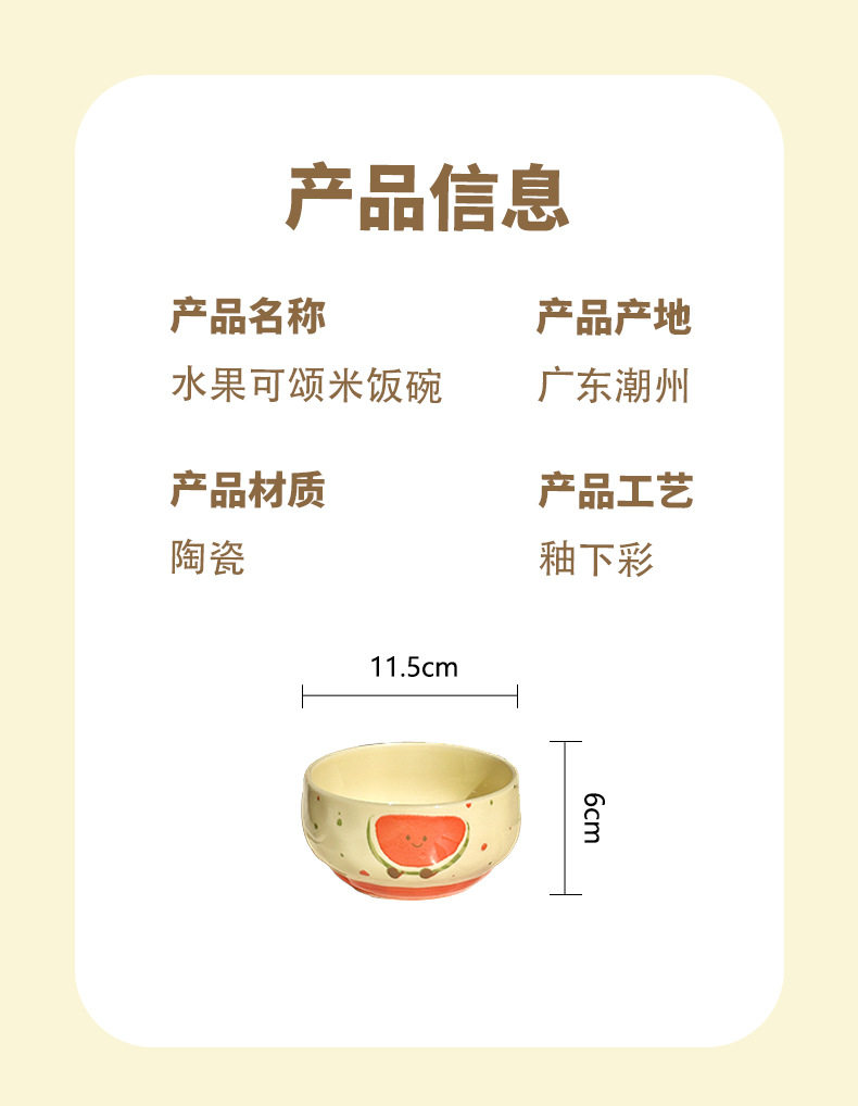 | Color | 4.65inch brown croissant-rice bowl,4.65inch red watermelon-rice bowl,4.65inch yellow banana-rice bowl,4.65inch green pear-rice bowl,4.65inch brown croissant-rice bowl + exclusive spoon,4.65inch red watermelon-rice bowl + exclusive spoon,4.65inch yellow banana-rice bowl + exclusive spoon,4.65inch green pear-rice bowl + exclusive spoon,4.65inch fruit-rice bowl mixed set of 4,4.65inch fruit-rice bowl mixed set of 4 + exclusive spoons of 4,4.65inch fruit-rice bowl mixed pack of 4 + gift box,4.65inch fruit-rice bowl mixed set of 4 + exclusive spoons of 4 + gift box |