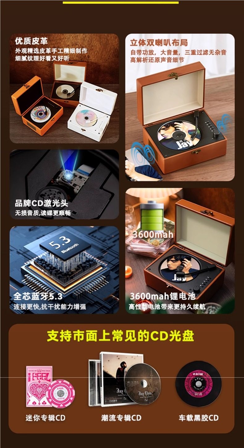 | Color | Retro white ultimate edition charging model comes with cd remote control greeting card gift bag ★ Long battery life and loud volume..,"retro brown ultimate edition charging model comes with cd remote control greeting card gift bag" ★ Long battery life and loud volume..,"walnut color ultimate edition charging model comes with cd remote control greeting card gift bag" ★ Long battery life and loud volume..,“fashionwhite” recording studio sound quality dual speakers independent sound chamber diaphragm √ pickup bald head √ lossless disc reading,"aima brown" recording studio sound quality dual speakers independent sound chamber diaphragm √ pickup bald head √ lossless disc reading.",“luminous white” xiaohongshu selects dual-speaker independent sound chamber diaphragm √ pick-up bald head √ lossless disc reading,“wood grain brown” xiaohongshu selects dual-speaker independent sound chamber diaphragm √ pickup bald head √ lossless disc reading,[white] studio sound quality pickup bald head lossless disc reading built-in speaker,[black] studio sound quality pickup bald head lossless disc reading built-in speaker,[orange] studio sound quality pickup bald head lossless disc reading built-in speaker,[purple] studio sound quality pickup bald head lossless disc reading built-in speaker,[green] studio sound quality pickup bald head lossless disc reading built-in speaker,The second generation [grey] idol original sound digital display large screen 4000 mah button to take out the disc,The second generation [white] idol original sound digital display large screen 4000 mah button to take out the disc,The second generation [apricot color] idol original sound digital display large screen 4000 mah button to take out the disc,Second generation [black pink] idol original sound digital display large screen 4000 mah button to get the disc,Second generation [green pink] idol original sound digital display large screen 4000 mah button to get the disc |