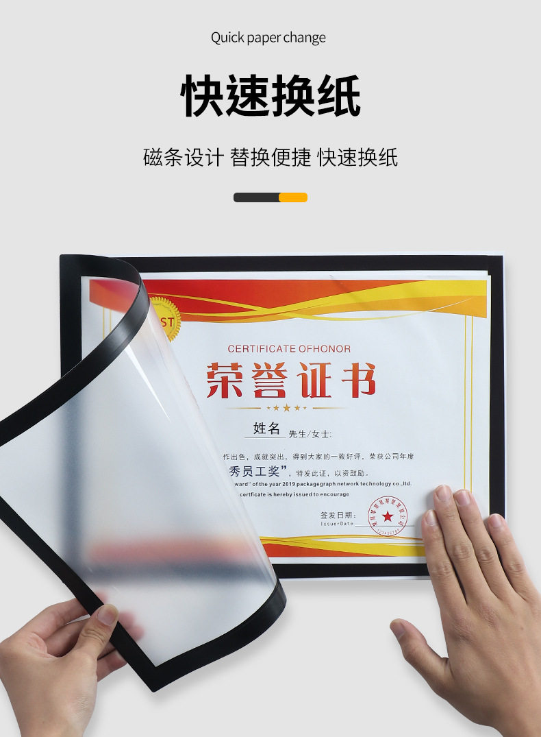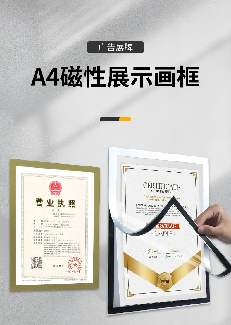 A4 Soft Magnetic Sticker Certificate Transparent Picture Frame Magnetic Photo Frame Display Sticker Mounting Nail-Free A2 Poster Frame Wholesale Customization