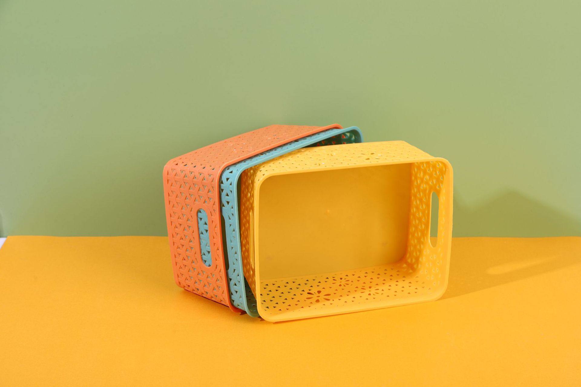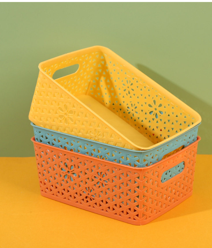 Wholesale In-Stock Household Plastic Storage Baskets, Rectangular Plastic Baskets, Storage Boxes, Cosmetic Woven Desktop Storage