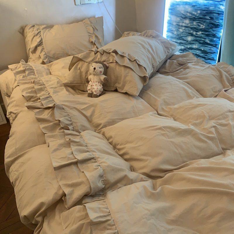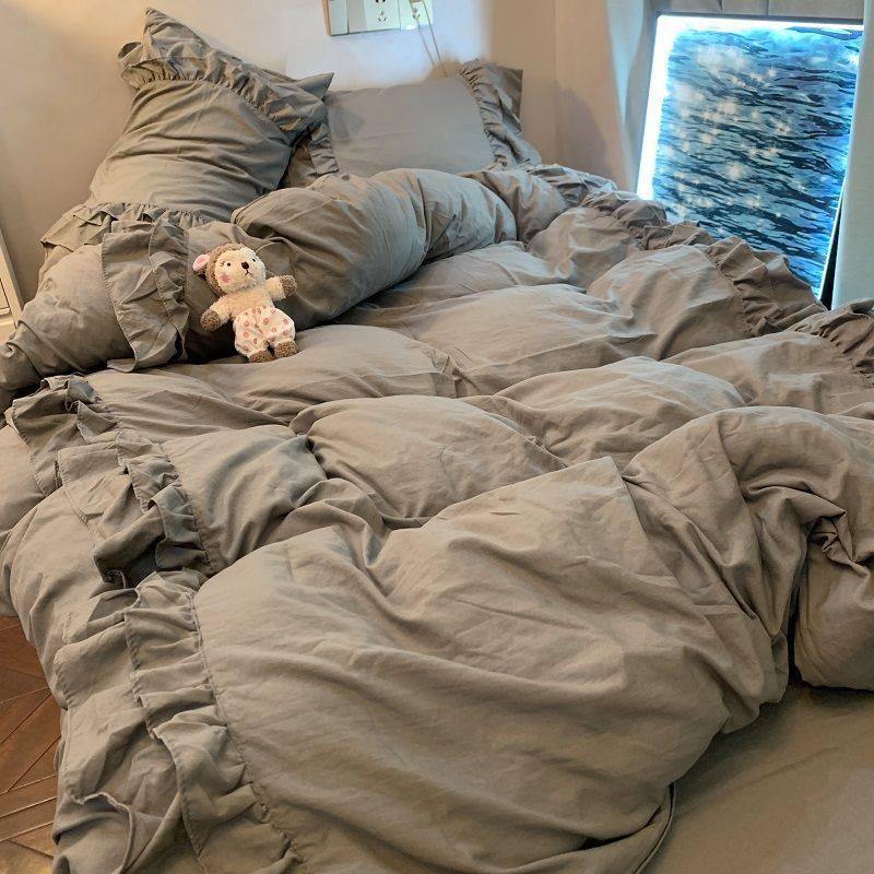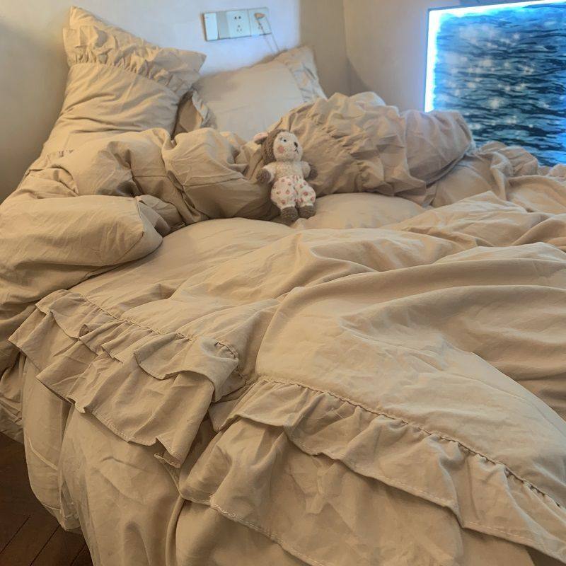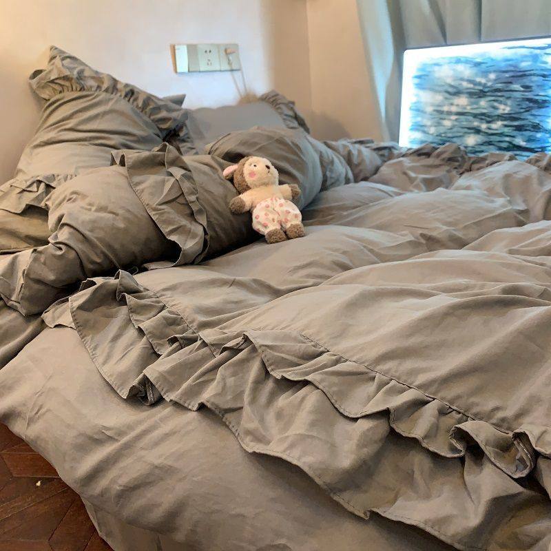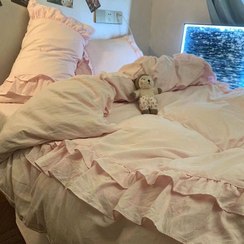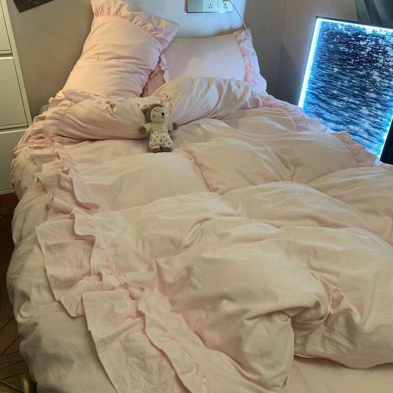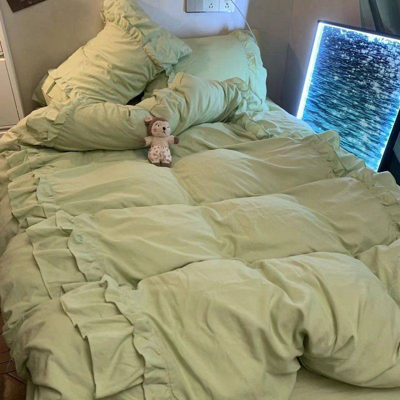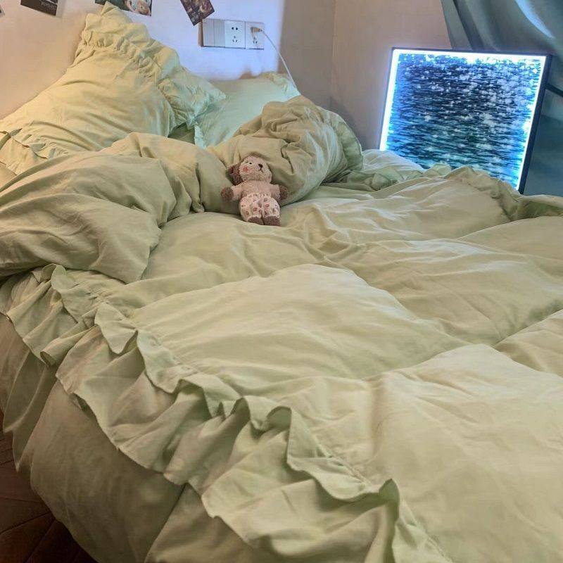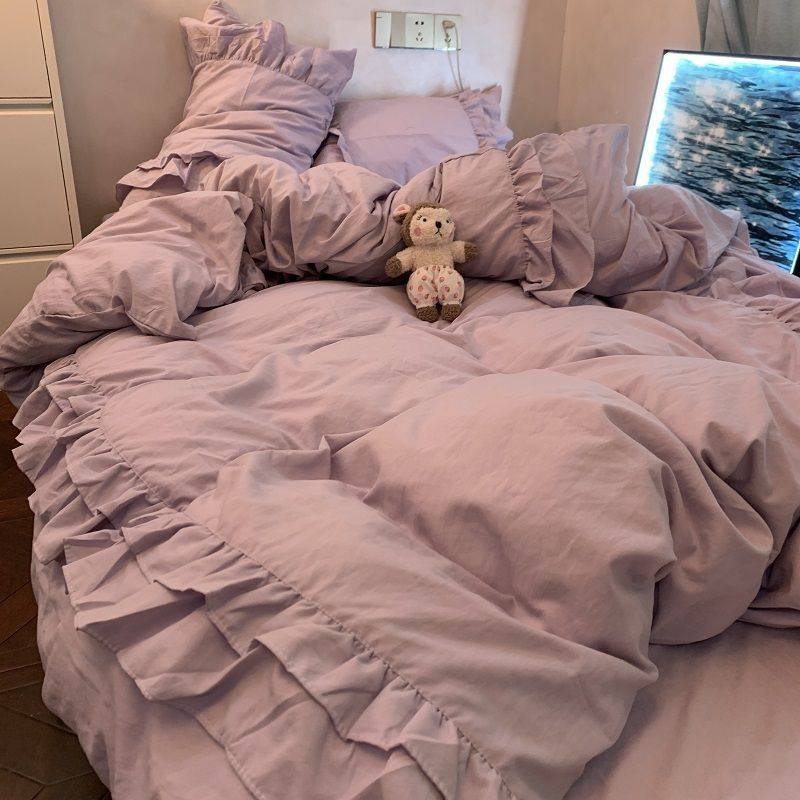 Princess Style Purple Lotus Leaf Lace Quilt Cover Four-Piece Bedding Set Washed Cotton Double Bed Sheets Dormitory Three-Piece Set