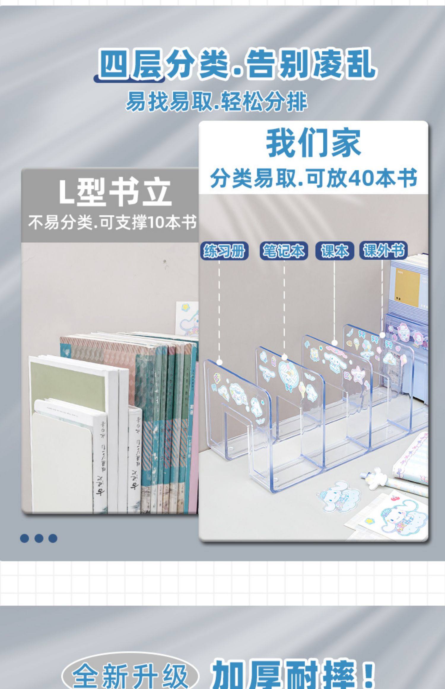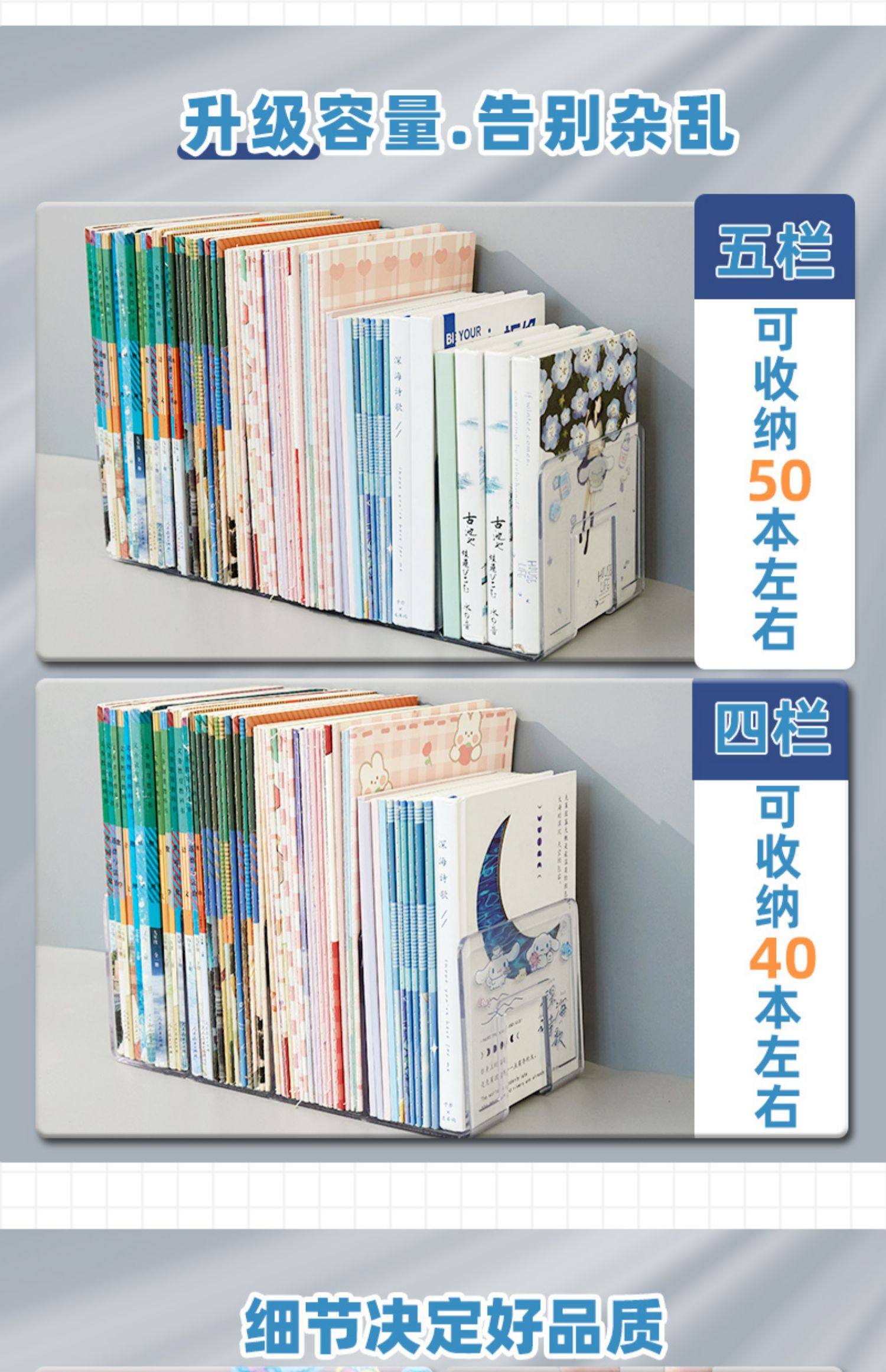 | Color | [upgraded model] four columns/transparent white/1 pack,If you have a lot of books at home, it is recommended to buy multiple packages, the more you buy, the more you buy! (),[upgraded extra thick] four columns/transparent white/2 pieces/free 1 sticker,[upgraded extra thick] four columns/cream white/2 pack/1 free sticker,[upgraded extra thick/extended and enlarged] five columns/transparent white/2 pieces,[upgraded extra thick] four columns/transparent white/2 pack,[upgraded extra thick] four columns/cream white/2 pack,[upgraded model] four columns/transparent white/2 pieces,[upgraded extra thick] four columns/transparent white/1 pack/free stickers,[upgraded extra thick] four columns/cream white/1 pack/free stickers,[upgraded extra thick] four columns/transparent white/1 pack/2 stickers included,[upgraded extra thick] four columns/transparent white/1 pack,[upgraded extra thick] four columns/cream white/1 pack,[upgraded and thickened] four columns/transparent white/1 pack,[upgraded and thickened] four columns/cream white/1 pack,[free single-frame pen holder] upgraded extra thick/four columns/transparent white/1 pack/free sticker + single-frame pen holder,[free three-compartment pen holder] upgraded extra thick/four columns/transparent white/1 pack/free sticker + three-compartment pen holder,[free hanging pen holder] upgraded extra thick/four columns/transparent white/1 pack/free sticker + hanging pen holder,[upgraded extra thick/extended and enlarged] five columns/transparent white/1 pack |