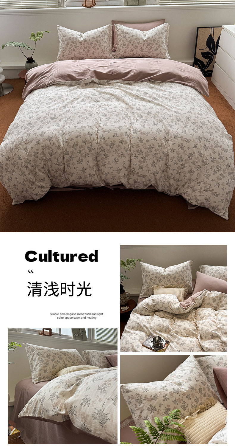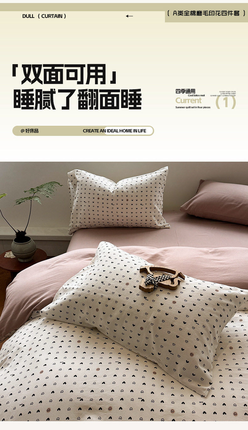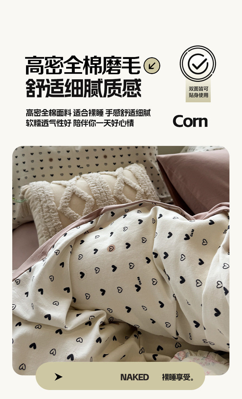 Micro-velvet feeling, warm and furry~丨100% cotton brushed four-piece set, type A, autumn and winter thickened and warm pure cotton quilt cover, three-piece set