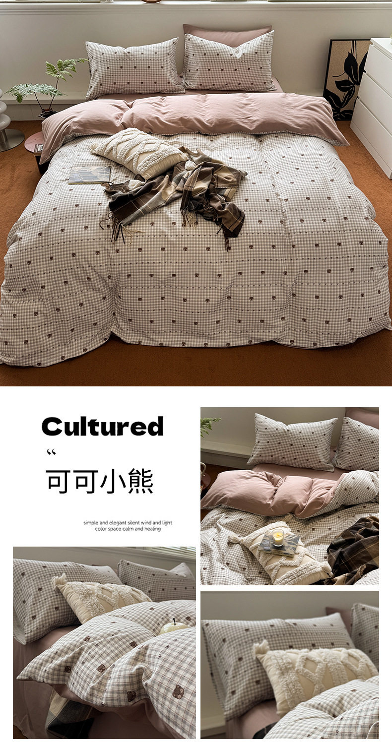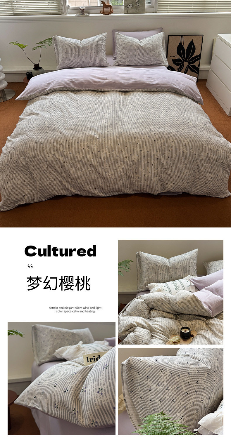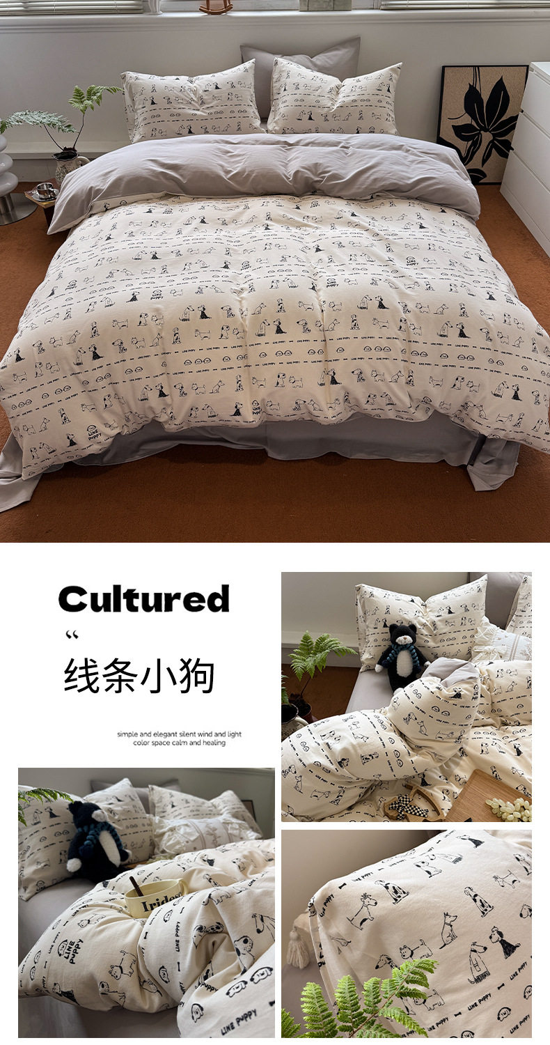 Micro-velvet feeling, warm and furry~丨100% cotton brushed four-piece set, type A, autumn and winter thickened and warm pure cotton quilt cover, three-piece set