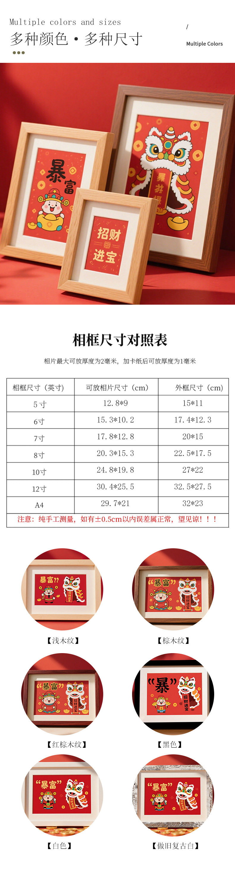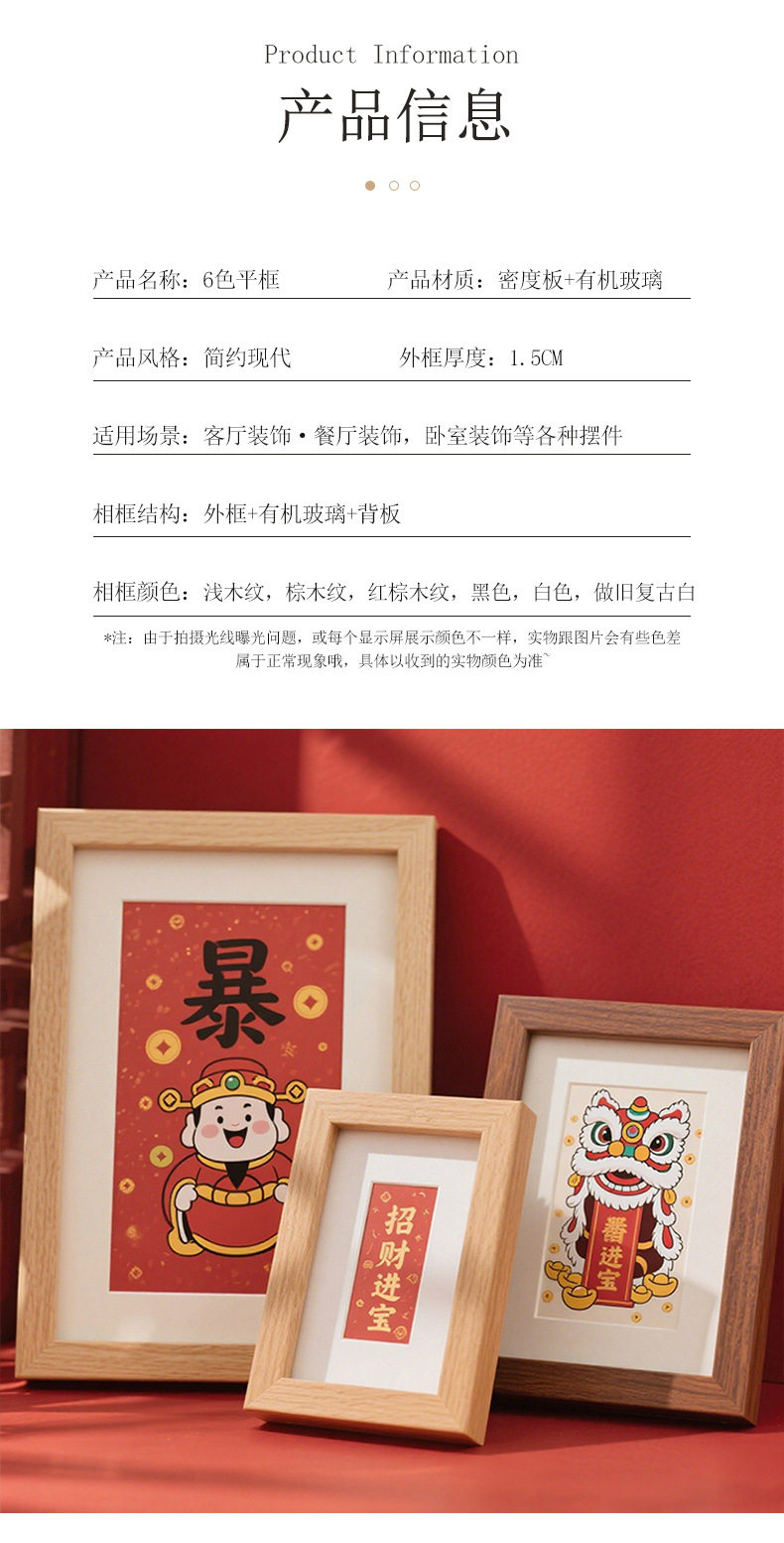 | Inner frame size | Single frame-flat frame wood color,Single frame-flat frame red brown pattern color,Single frame-flat frame black,Single frame-flat frame retro white,Single frame brown wood grain color,Single frame-flat frame white |