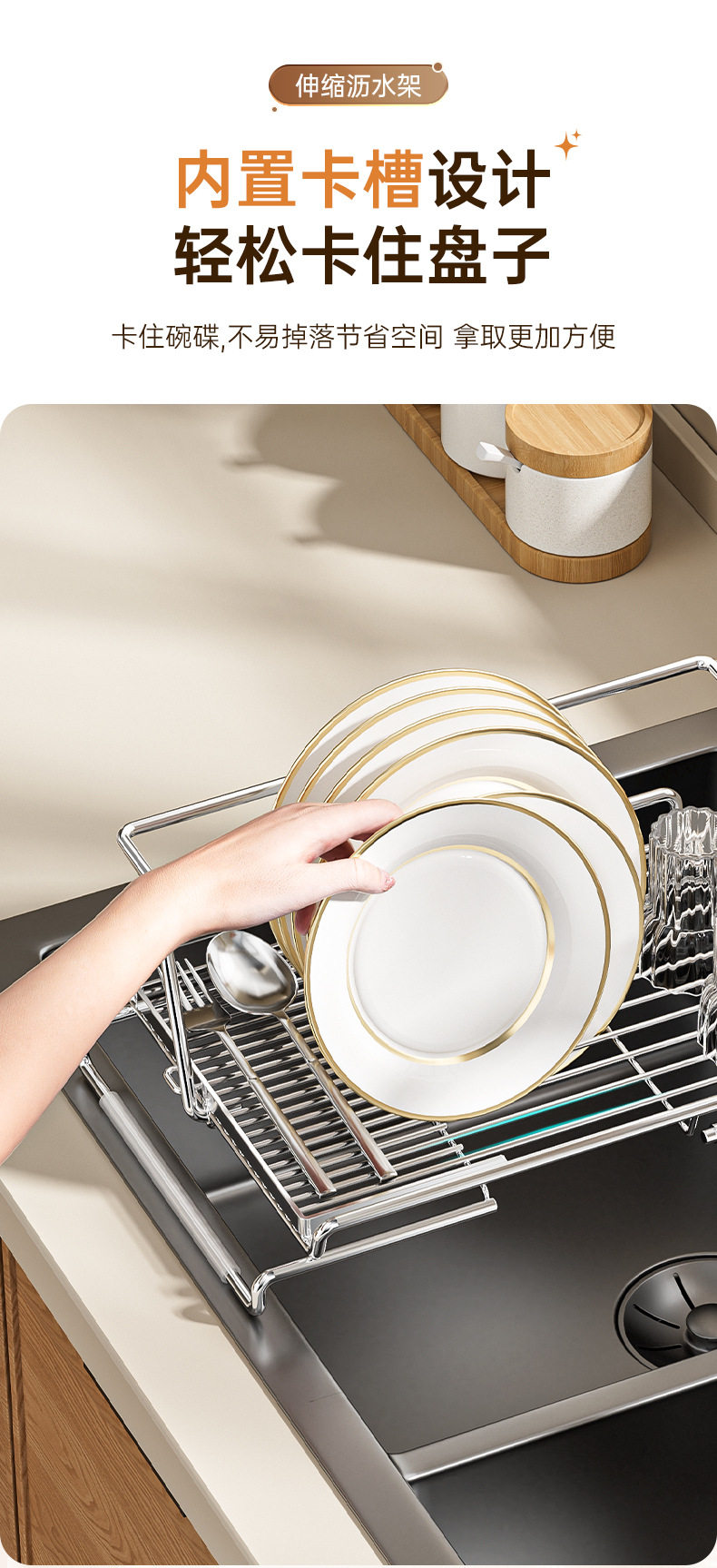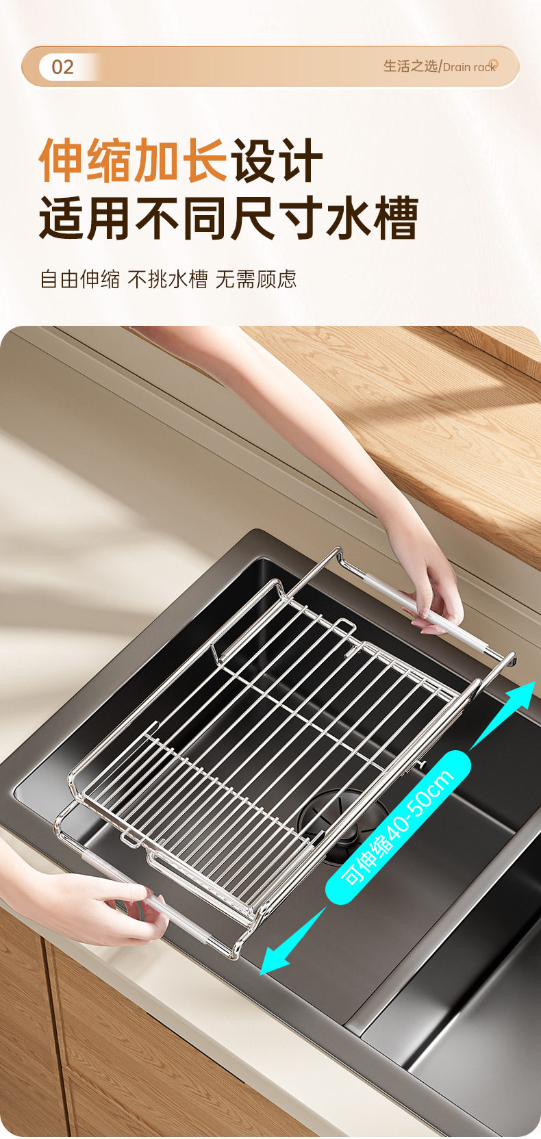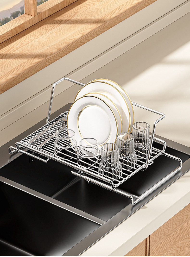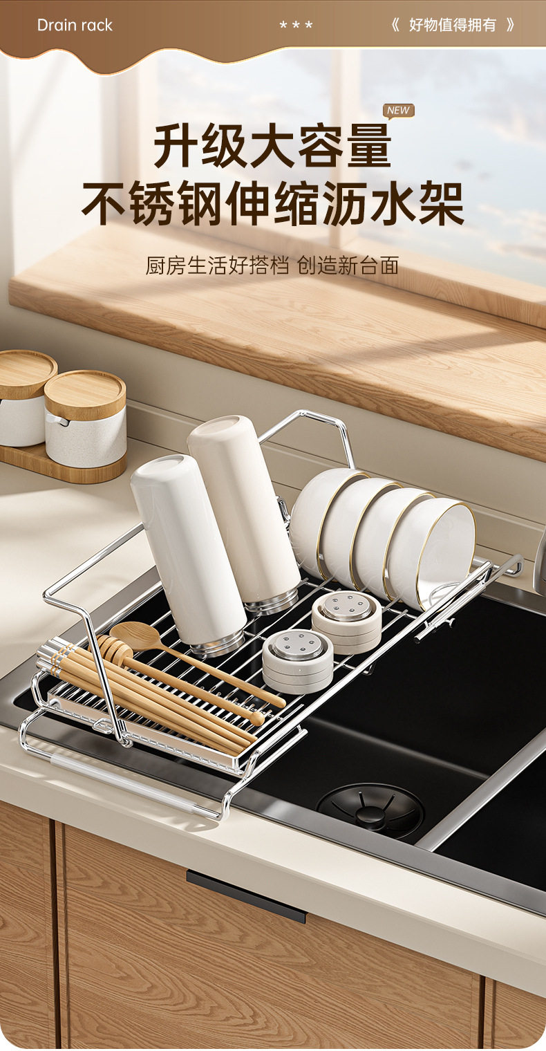 Stainless Steel Retractable Sink Drain Basket, Drain Rack, Kitchen Storage Rack, Dishwashing Basin, Bowl and Plate Filter Net Storage Rack