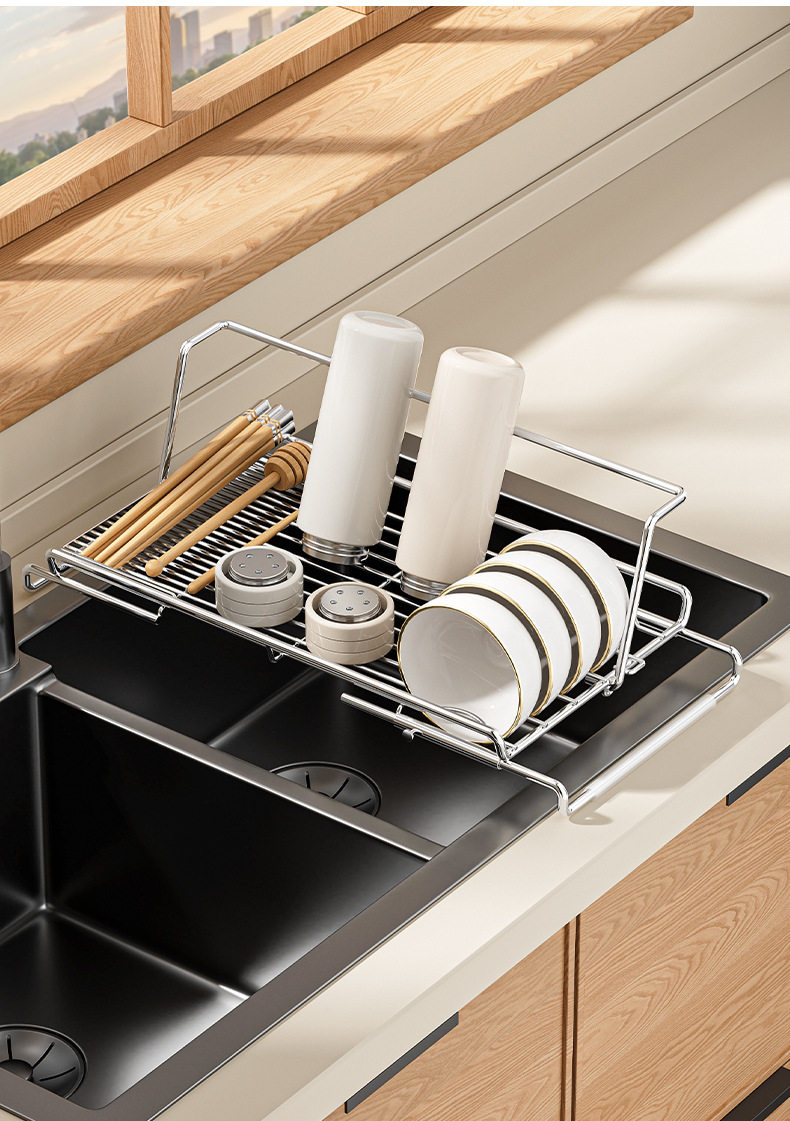 Stainless Steel Retractable Sink Drain Basket, Drain Rack, Kitchen Storage Rack, Dishwashing Basin, Bowl and Plate Filter Net Storage Rack