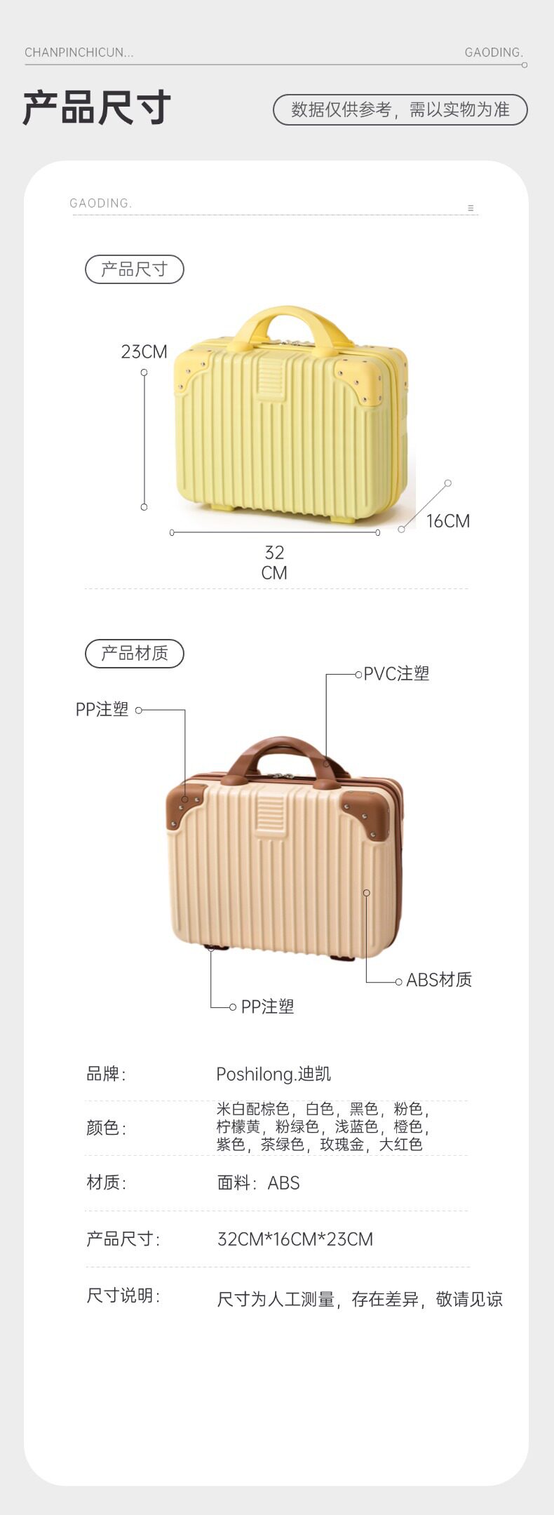 Factory Direct Supply 14inch Small Suitcase Hand-Held Cosmetic Case with Optional Password Lock Luggage Gift Box Travel Case
