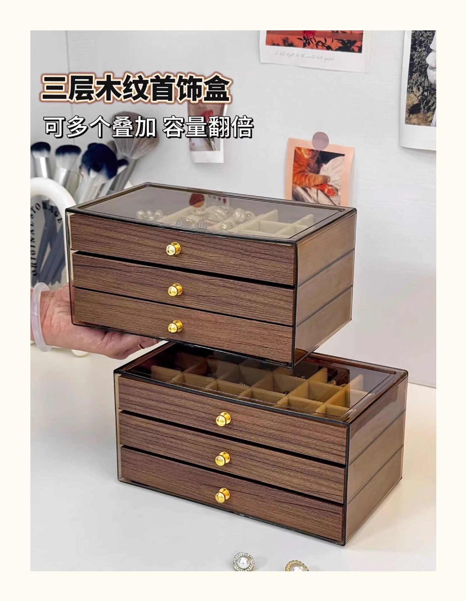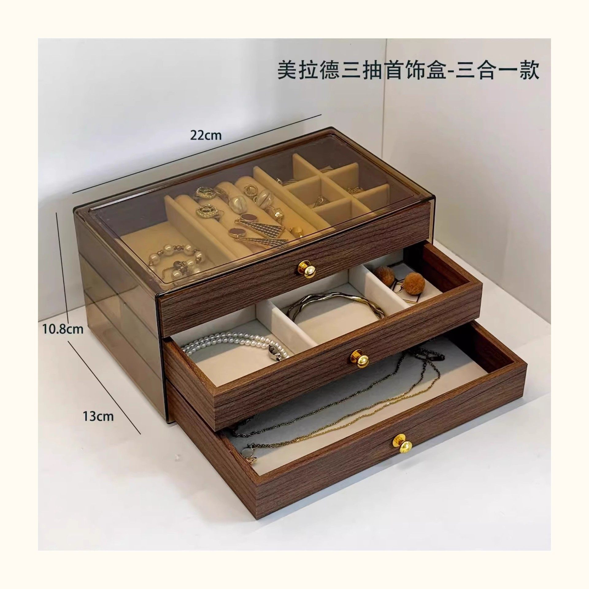 | Model | Walnut wood grain jewelry box |