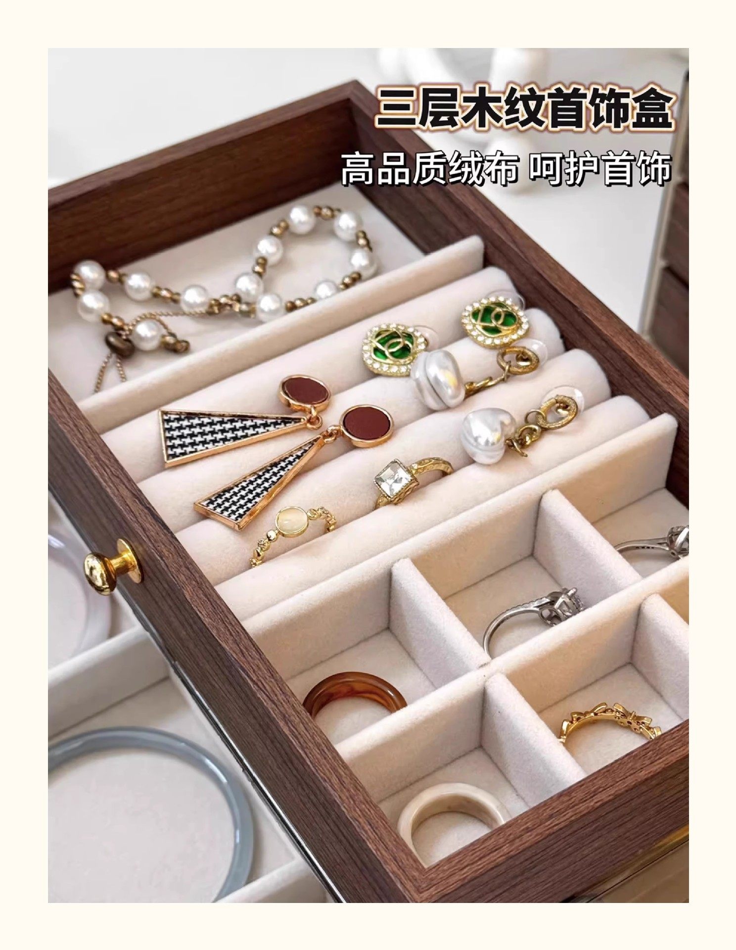 | Color | Walnut wood grain [3-in-1 + six compartments + empty tray],Walnut grain [18 grids + six grids + empty plate],Walnut wood grain ring display tray with six compartments and empty tray,Walnut grain [type a] 5-layer jewelry box |