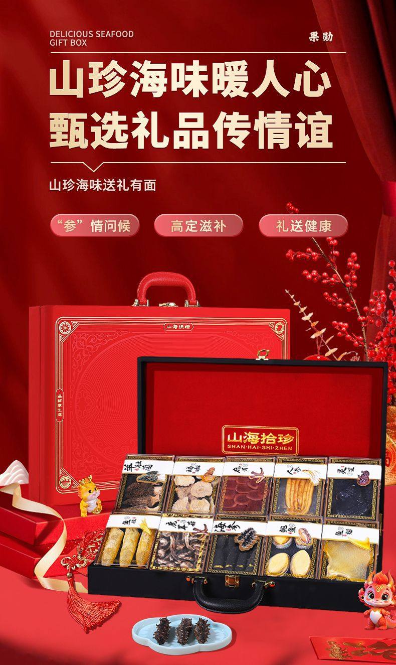 Abalone, Sea Cucumber, Cordyceps, Ganoderma Lucidum, Mid-Autumn Festival Gift Group Purchase, Seafood and Dried Seafood Gift Box for Elders