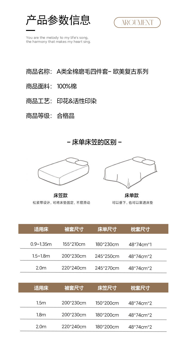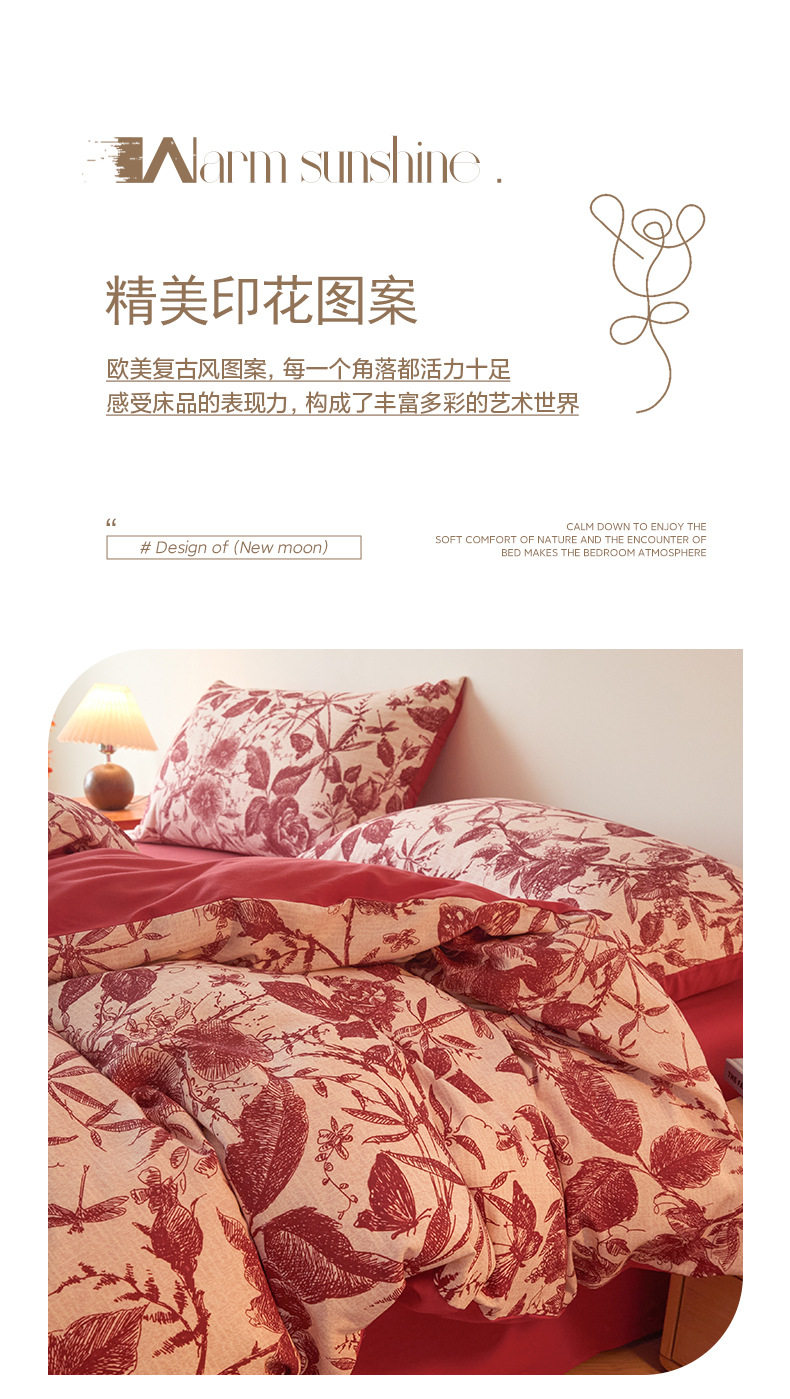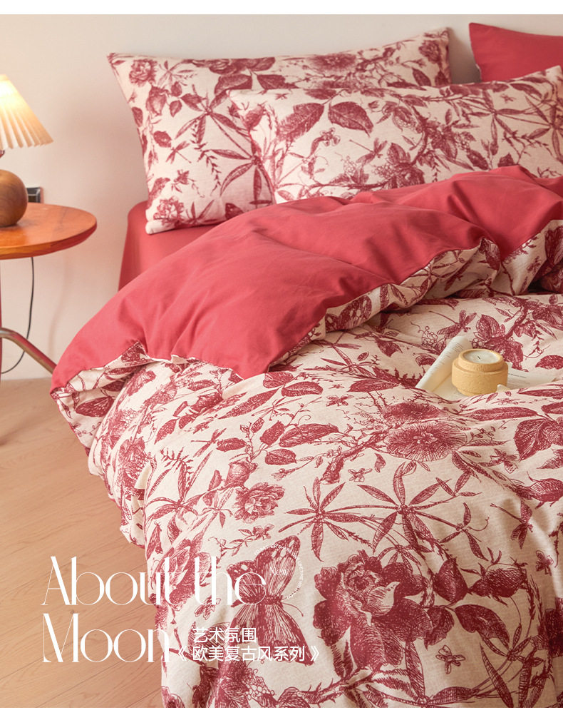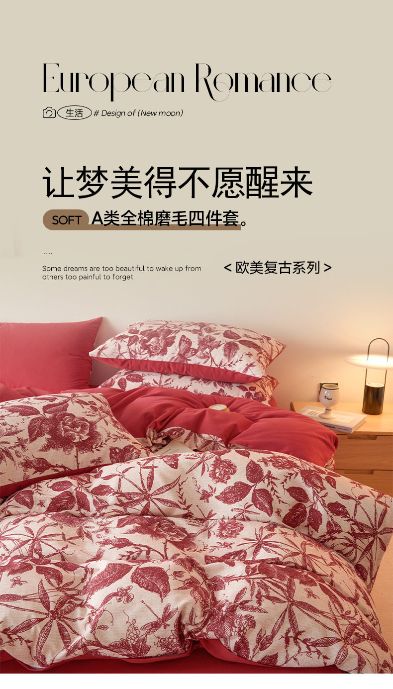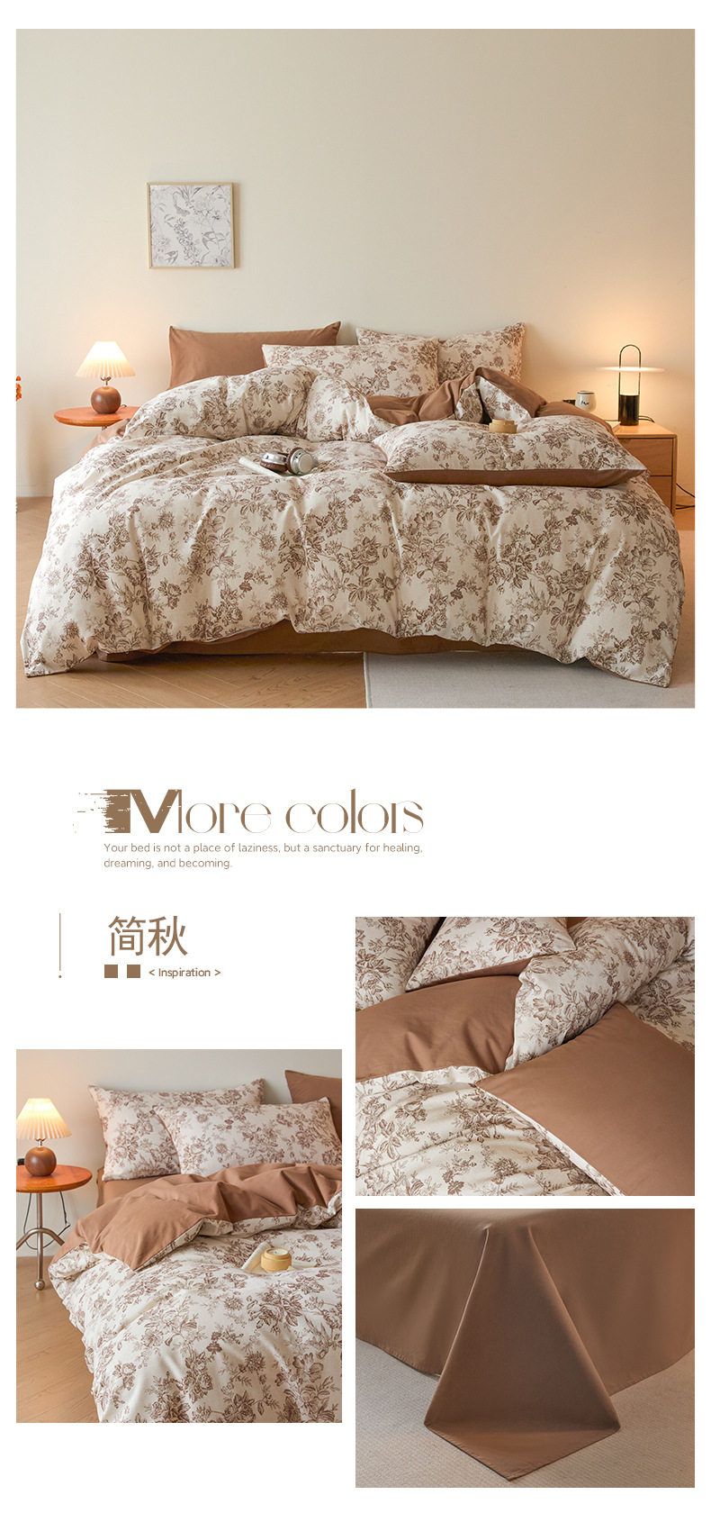 Category a Mother and Baby 100% Cotton Brushed European Retro Style Pure Cotton Bed Four-Piece Set Student Dormitory Bed Three-Piece Set