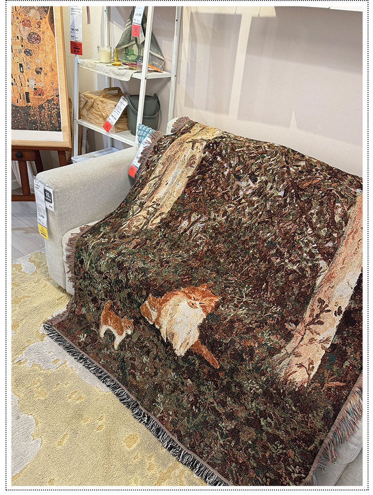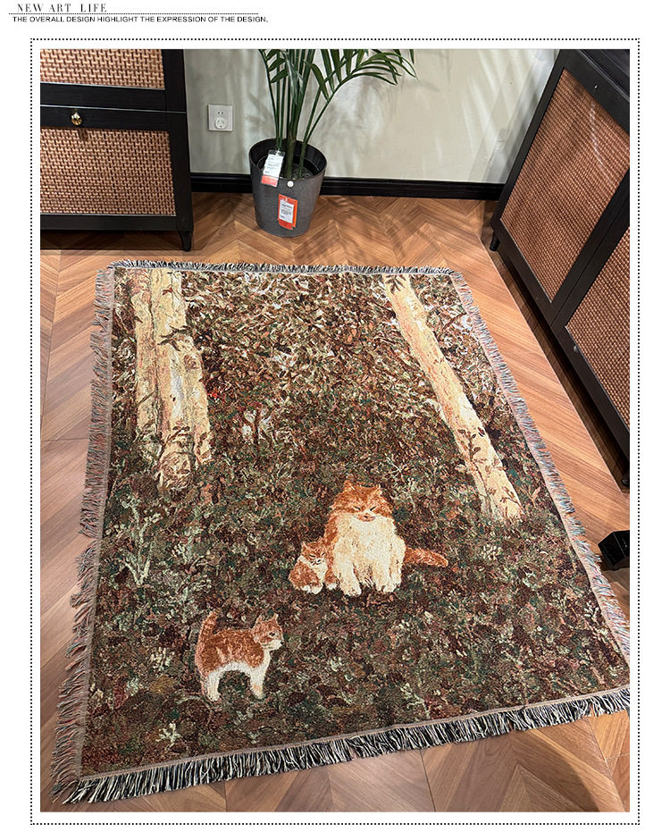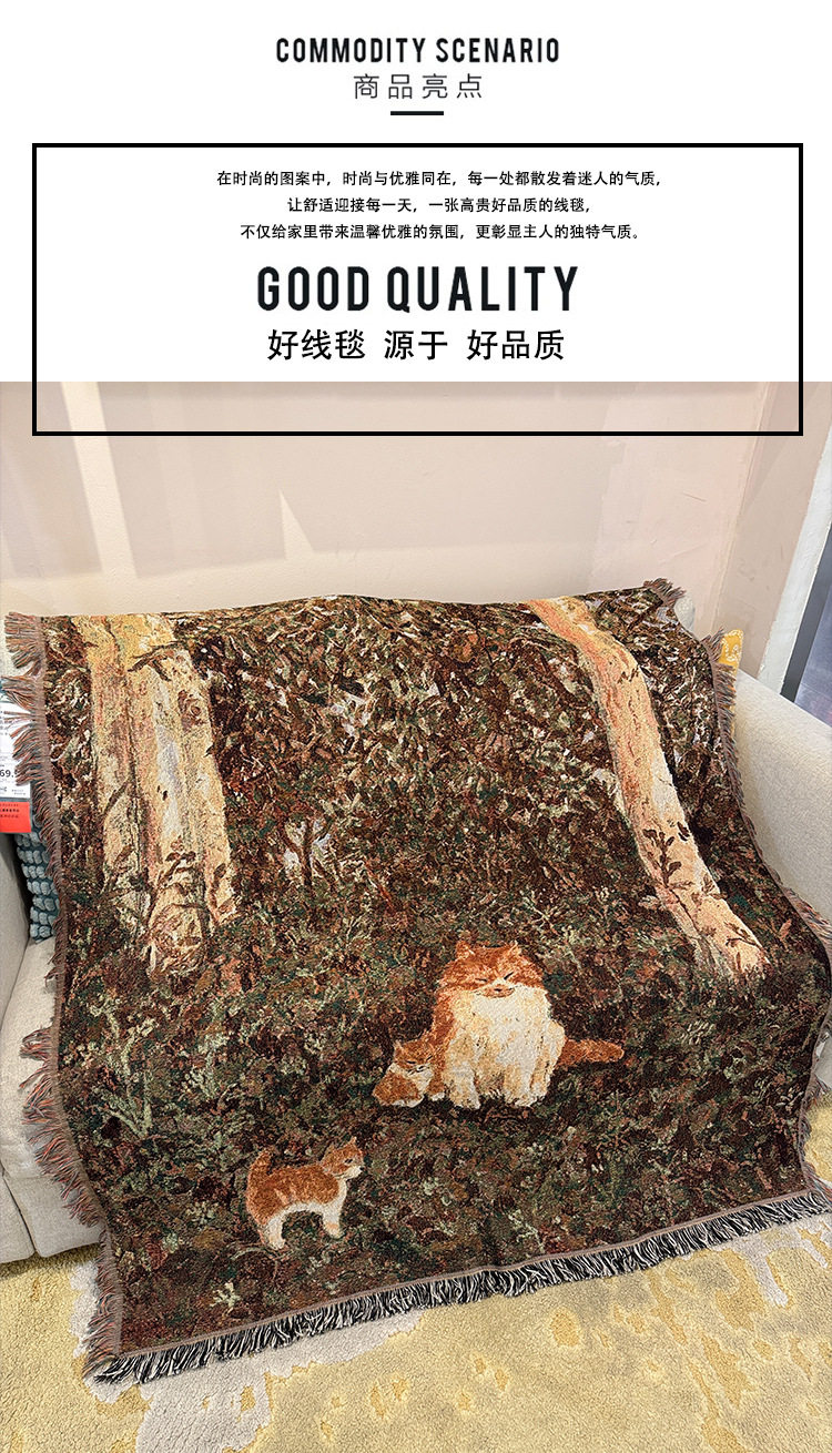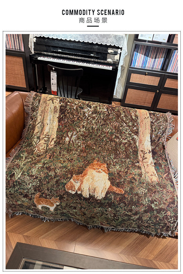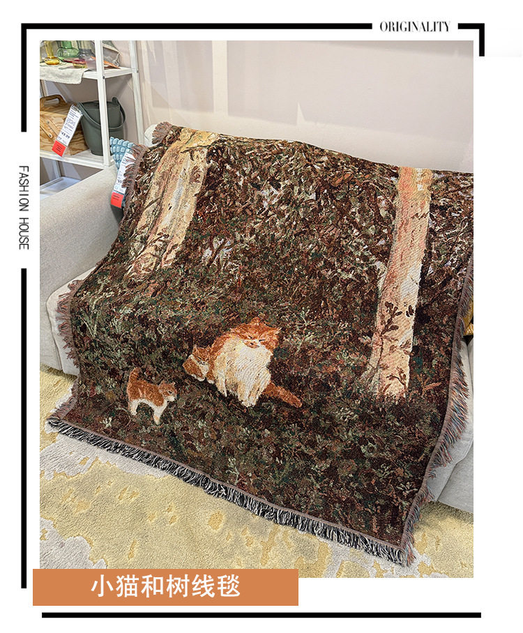 Retro Oil Painting Style Cartoon Cat Blanket Jacquard Knitted Cotton Thread Blanket Sofa Blanket Single Cover Blanket Wall Tapestry