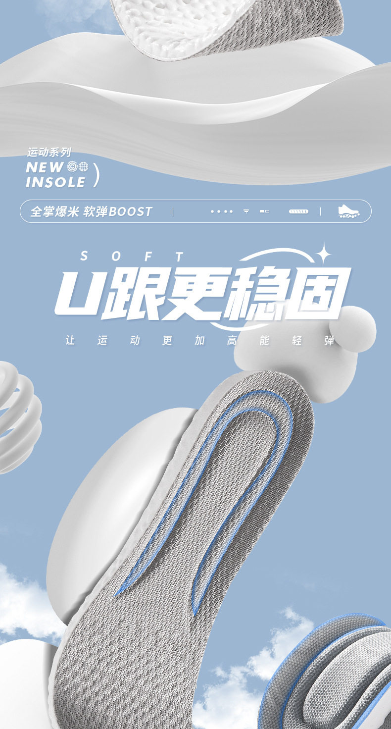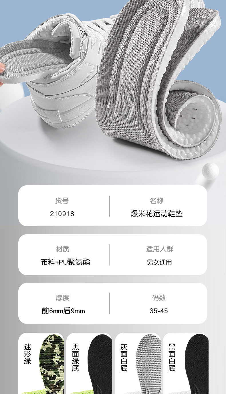 Pu Insoles for Women, Soft Soles for Long Periods of Time, Not Tired after Standing for a Long Time, Military Training, Men's Sports Shock-Absorbing, Sweat-Absorbing and Deodorizing Wholesale Ready Stock