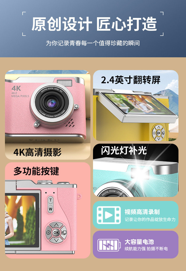 Cross-Border New Flip-Screen High-Pixel Beauty-Enhancing Mirrorless Digital Camera for Students, Selfies, Campus Ccd Wholesale